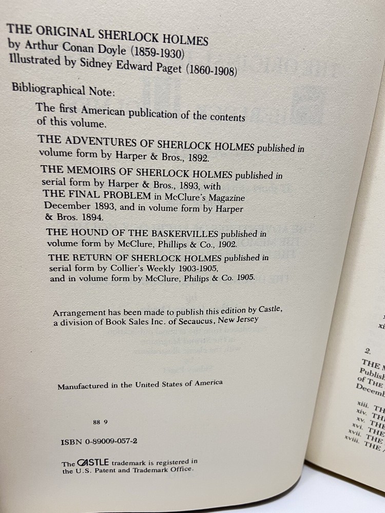 VINTAGE The Original Illustrated Sherlock Holmes by Sir Arthur Conan Doyle - SEE PHOTOS to see Story List from Book - Bonded Leather - Hardcover - Gold Colored Edging on Pages - Classic Illustrations by Sidney Paget - 636 pages - Table of Contents - Vintage - Castle - USA MOST ITEMS SHIP SAME DAY OR NEXT Ships USPS Media Mail Thanks so much for looking