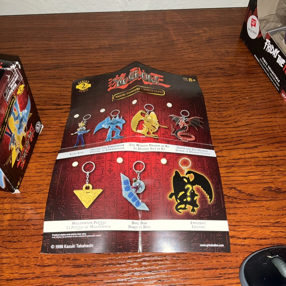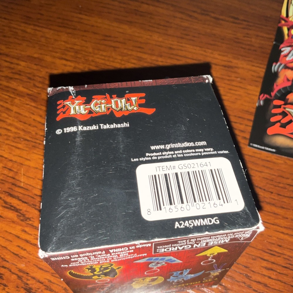 This vintage Yu-Gi-Oh! mystery pack includes a figure of Yugi's character, Slifer The Sky Dragon holo-tile, and a poster. Manufactured in 1996 by Mattel, the 2-inch action figure is an original piece from the Yu-Gi-Oh! franchise. Packaged unopened, it is a boxed item with Studio Gallop as the animation studio behind the Yu-Gi-Oh! TV show. The figure is part of a series related to boxing.