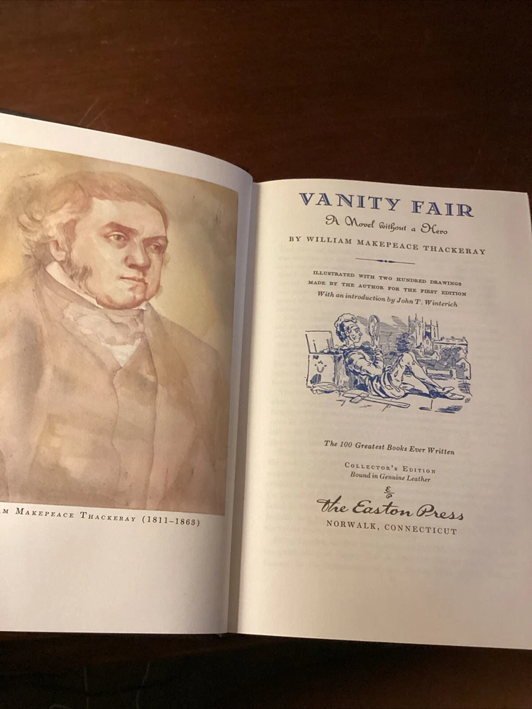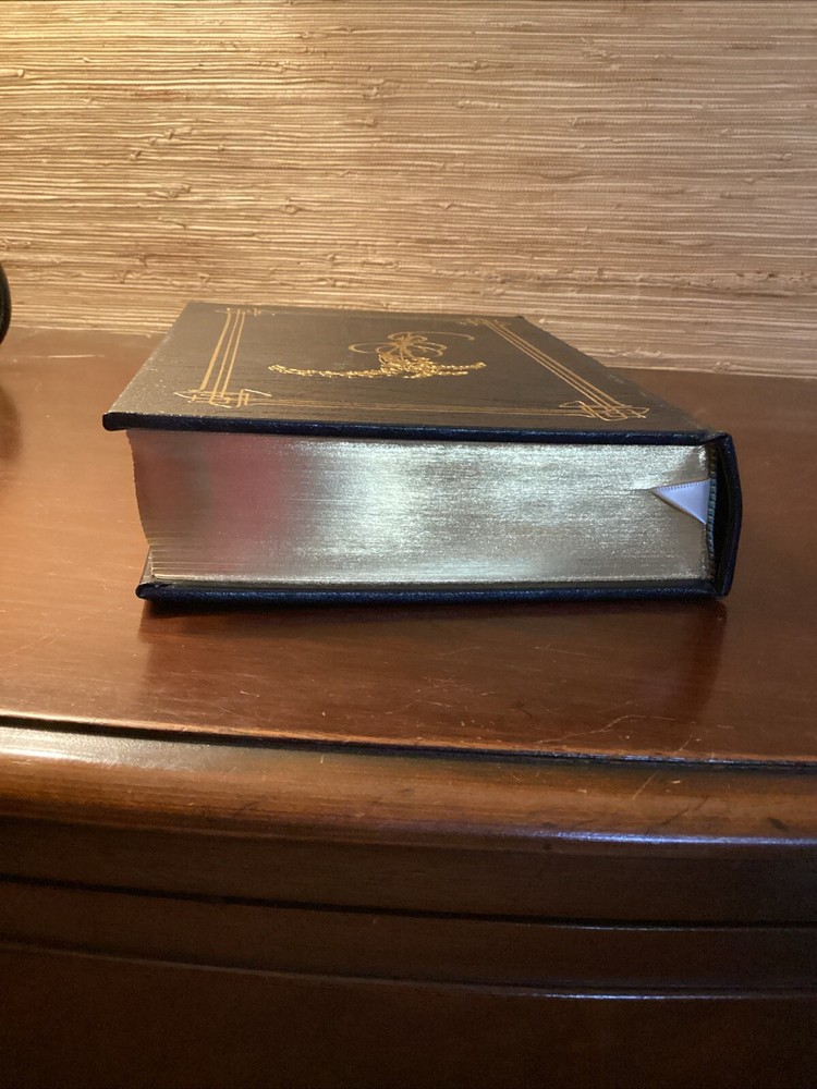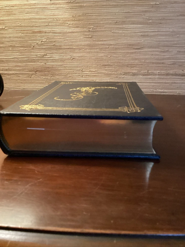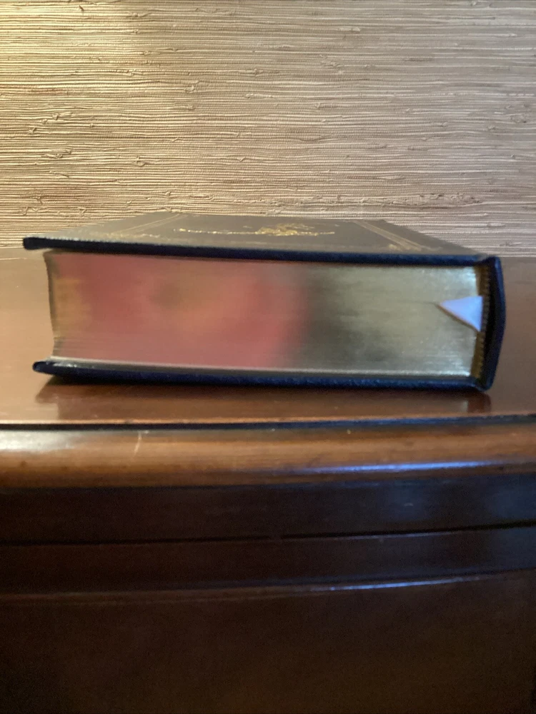 This book has a beautiful leather cover embroidered design. The book is a little off center I think it was misplaced on the shelf at some point, but it still stand and looks amazing, the pages are clean and shiny with a gold lining shining from the sides. Please see pictures for more information Dive into the world of 19th-century British literature with the Vanity Fair Collector's Edition by William Makepeace Thackeray, presented in a luxurious leather-bound volume by Easton Press. This limited edition is a treasure for both bibliophiles and collectors, featuring rich illustrations that bring the intricate storytelling to life. Explore the intricacies of social climbing and romantic entanglements within the pages of this classic novel. This edition, with its gold gilt detailing and high-quality paper, ensures a reading experience as elegant as its contents. Whether for display or perusal, it is a timeless addition to any collection.
