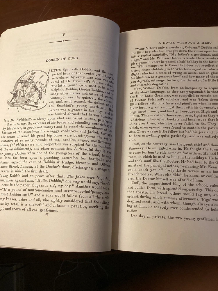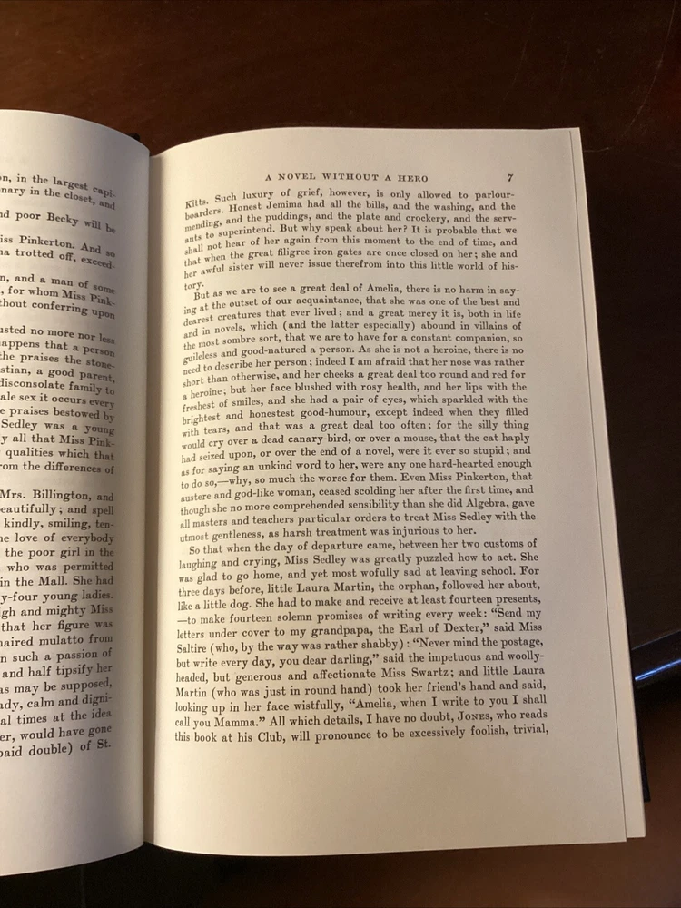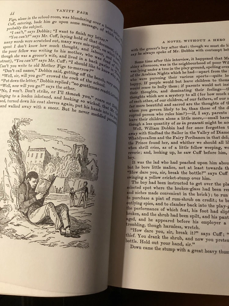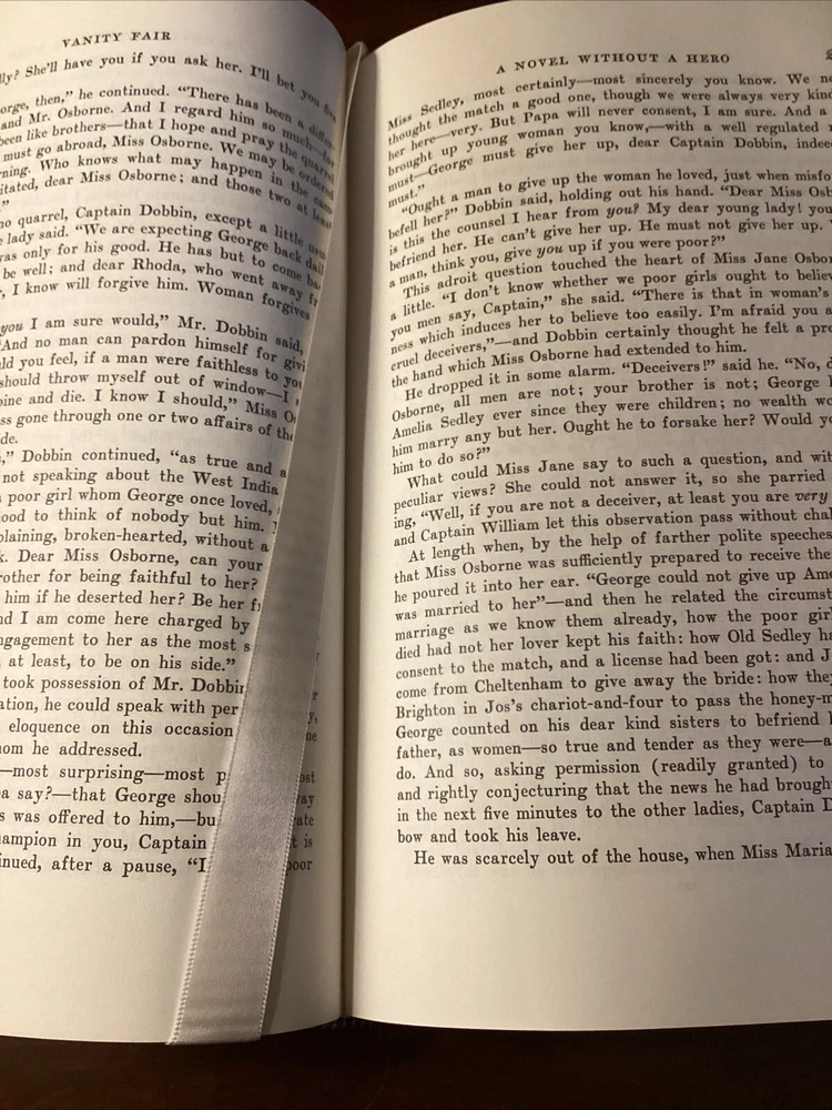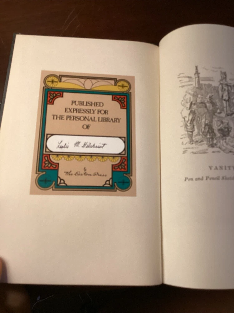 This book has a beautiful leather cover embroidered design. The book is a little off center I think it was misplaced on the shelf at some point, but it still stand and looks amazing, the pages are clean and shiny with a gold lining shining from the sides. Please see pictures for more information Dive into the world of 19th-century British literature with the Vanity Fair Collector's Edition by William Makepeace Thackeray, presented in a luxurious leather-bound volume by Easton Press. This limited edition is a treasure for both bibliophiles and collectors, featuring rich illustrations that bring the intricate storytelling to life. Explore the intricacies of social climbing and romantic entanglements within the pages of this classic novel. This edition, with its gold gilt detailing and high-quality paper, ensures a reading experience as elegant as its contents. Whether for display or perusal, it is a timeless addition to any collection.