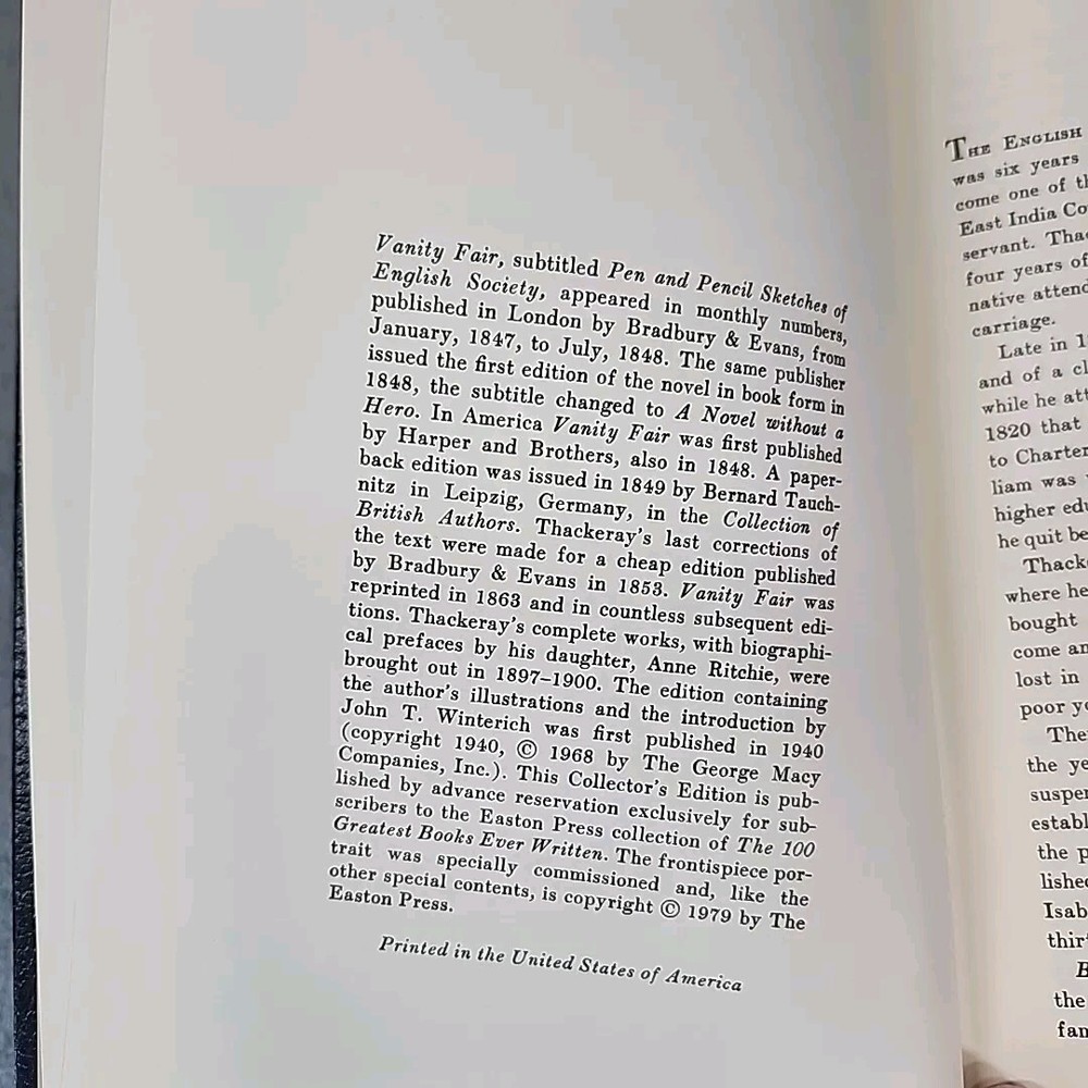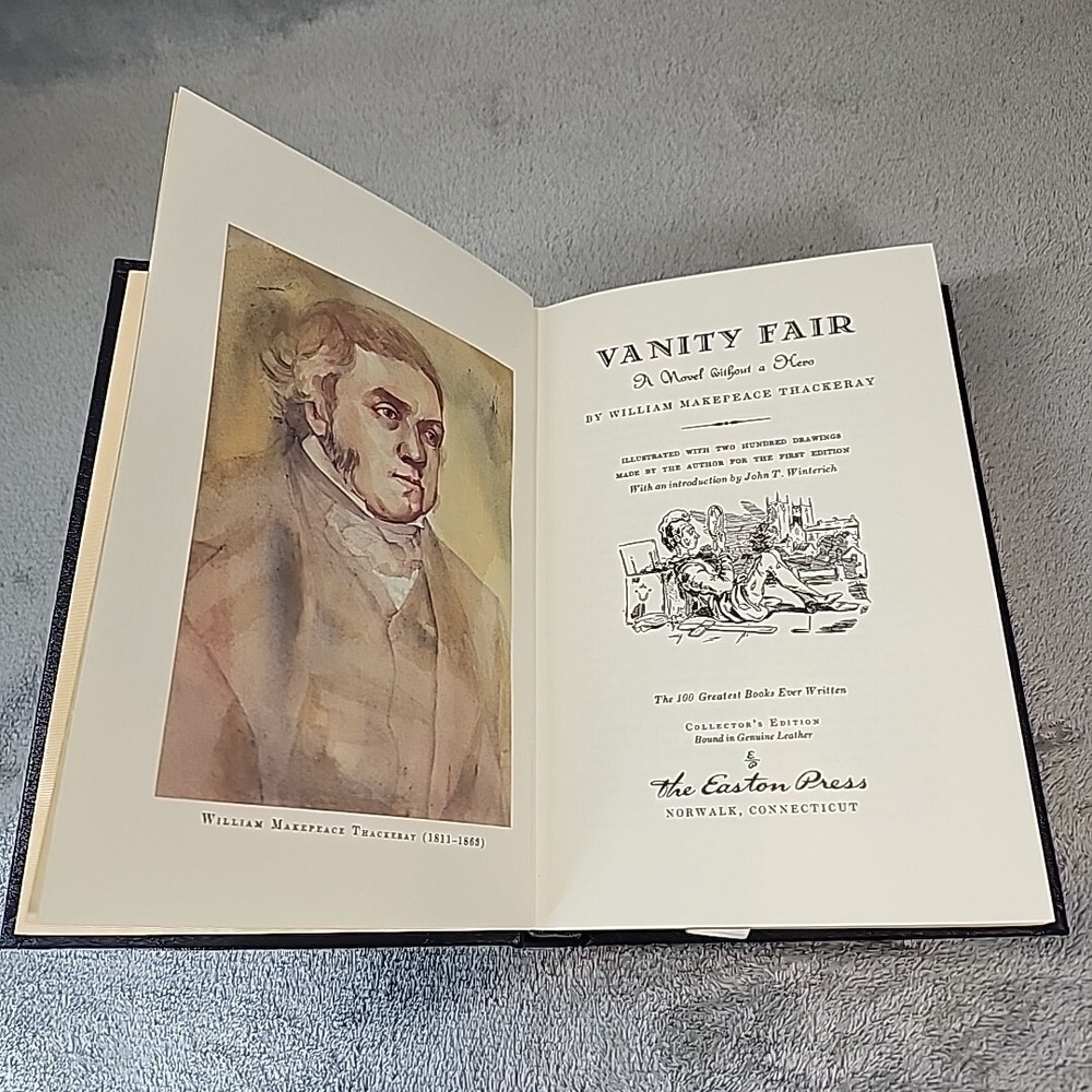 Immerse yourself in the world of 19th-century England with "Vanity Fair" by William Makepeace Thackeray, a masterpiece that satirizes the social climbers and hypocrites of the author's time. This edition, published by Easton Press, is a collector's dream, bound in sumptuous leather and adorned with illustrations that bring the novel's vivid characters to life. This limited edition of "Vanity Fair" is a must-have for any literature enthusiast or collector of classic novels. With its beautifully crafted binding and special attributes, including being a collector's edition and illustrated, it is a rare find that would make a fine addition to any library. Delve into the pages of this timeless novel and experience the charm and wit of Thackeray's storytelling.