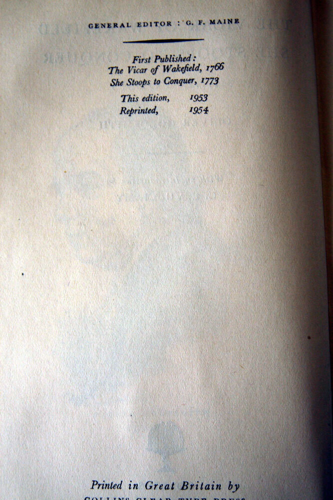 Description Vicar of Wakefield / She Stoops to Conquer and Poems by Oliver Goldsmith. Collins Classics. Vintage leather book with slipcase. Published in 1954. Intro by C.E. Vulliamy. 320 pages. Very good condition. Books will be packed securely for safe shipment. Books will ship via USPS Media Mail, unless otherwise requested. If you would like to upgrade to an expedited shipping method, please contact me for a quote. Please view the photos and contact me with any specific questions. G2 **Please contact me with any questions prior to bidding. Check out my other listings now!** ***Please note: If you are bidding on a used or antique book... We do our best to accurately describe each book and identify any flaws it may have. If you have specific questions regarding its condition, please never hesitate to ask. Unfortunately, we cannot always inspect each page, and therefore grading is from visual inspection and browsing through the book. Unless stated otherwise, our books will contain signs of wear and age which is normal within the vintage/antiquarian category. We offer primarily used, vintage and antique books. Our books are stored in a dry, 100% smoke-free environment . We will always mention if a book has a noticeably unpleasant odor, however if you have a particularly sensitive sense of smell, we cannot recommend that you purchase any antique or vintage books. Payment Paypal Accepted. Shipping FREE USPS Media Mail shipping anywhere in the U.S. **International Buyers please contact me for a shipping quote prior to purchase.** Return Policy We consider All Sales to be Final. Returns Accepted for Full Refund of Purchase Price only if item arrives significantly not as described. Shipping & Handling costs will not be refunded under any circumstances. Please be sure that this is the item you are looking for prior to bidding. If you have any questions about the content of an item, condition of an item or a question about any of our policies please do not hesitate to ask. Feedback If you were pleased with your purchase and experience with us please leave a feedback comment.