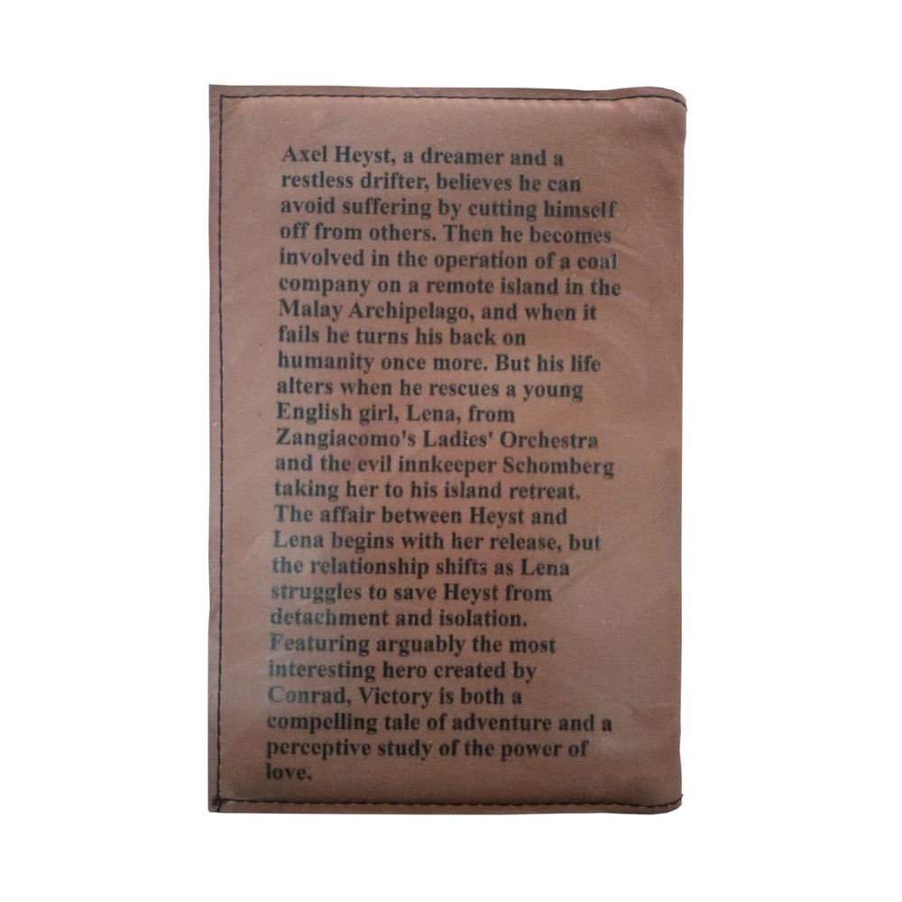 Books, as much as experiences, change my life, and I decided to make a limited collection of all the books I read and loved. And maybe you also will find in my collection a book that you enjoyed, and it even might have influenced your life. The book is a soft cover which I recycle and transform into a limited edition, personalized hardback with leather cover, designed and made by me. First, I prepare the book by embedding cotton cords into the spine. Adding 2 mm wood boards to the front and back. And reinforcing everything with cloth. To make the cover I use grade A, naturally tanned hide, I buy from a tannery in north Spain. It is the same leather Louis Vuitton uses to make his bags, so it is top quality. I do all the processing of the leather myself. First, I design the cover, and what I did here I used this painting of a volcano, exploding on a tropical island. And, for me, it represents the volcano in the middle of Heyst’s island. Lying dormant in the background, but it could explode, unexpectedly, at any moment. Kind of like Heyst’s life did. Next, I mix leather inks and screen them on the surface of the leather. The inks are partly absorbed by the skin to create a permanent bond. Finally, I coat the leather with protective solution. The leather gives the image a vintage look and beautiful texture, and it will age nicely with time. Inside the front cover. I can print a personal message or a quote from the book. The book is beautiful. Visually it has a very nice texture, it smells great, and the more you handle it the more beautiful it will become. And it makes a great gift for yourself, or somebody who appreciates books. So if you want one, don’t snooze, or you might lose. I will make a total of 100 editions. Each one will be initialed by me and numbered. The numbers will go in chronological order from 2 up, since number 1 stays with me. Book - Victory by Joseph Conrad. Size- 8 x 5.5 inches (21 x 13.5 cm). Edition - 11 of 100, initialed and numbered. If you are interested in a different title, send me a message and I will give you a quote. You can see the video of how I make the book cover in the link below https://youtu.be/WUC2lGlsgGE If you would like to hear my review of this title, you can find it in the following link https://youtu.be/qbp_vih8ATA Returns: This is a custom-made item, so returns or exchanges are not accepted. But you can contact me if there is any problem with your order. Colors: Since I make each item to order, the color might vary from the pictures. It depends on how the inks mix and how they react with leather. Shipping: I make each item to order, and it takes a few weeks, since I need to find the book first. I go to the post office once a week. Estimated delivery time is about two weeks, but it depends on the postal service and customs. And occasionally there are delays, and it might take a month or so to arrive.