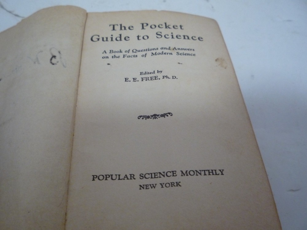 This vintage 1930 book titled "The Pocket Guide to Science" by E.E Free is an interesting read for anyone interested in science.. This edition is bound in leather and was printed in New York, in 1930 It covers a wide range of scientific topics. The book is in its original form and has not been printed elsewhere. It is a rare find for collectors and scientists alike. ITEM WILL SHIP THE NEXT BUSINESS DAY, MONDAY THRU FRIDAY, AFTER PAYMENT IS RECEIVED