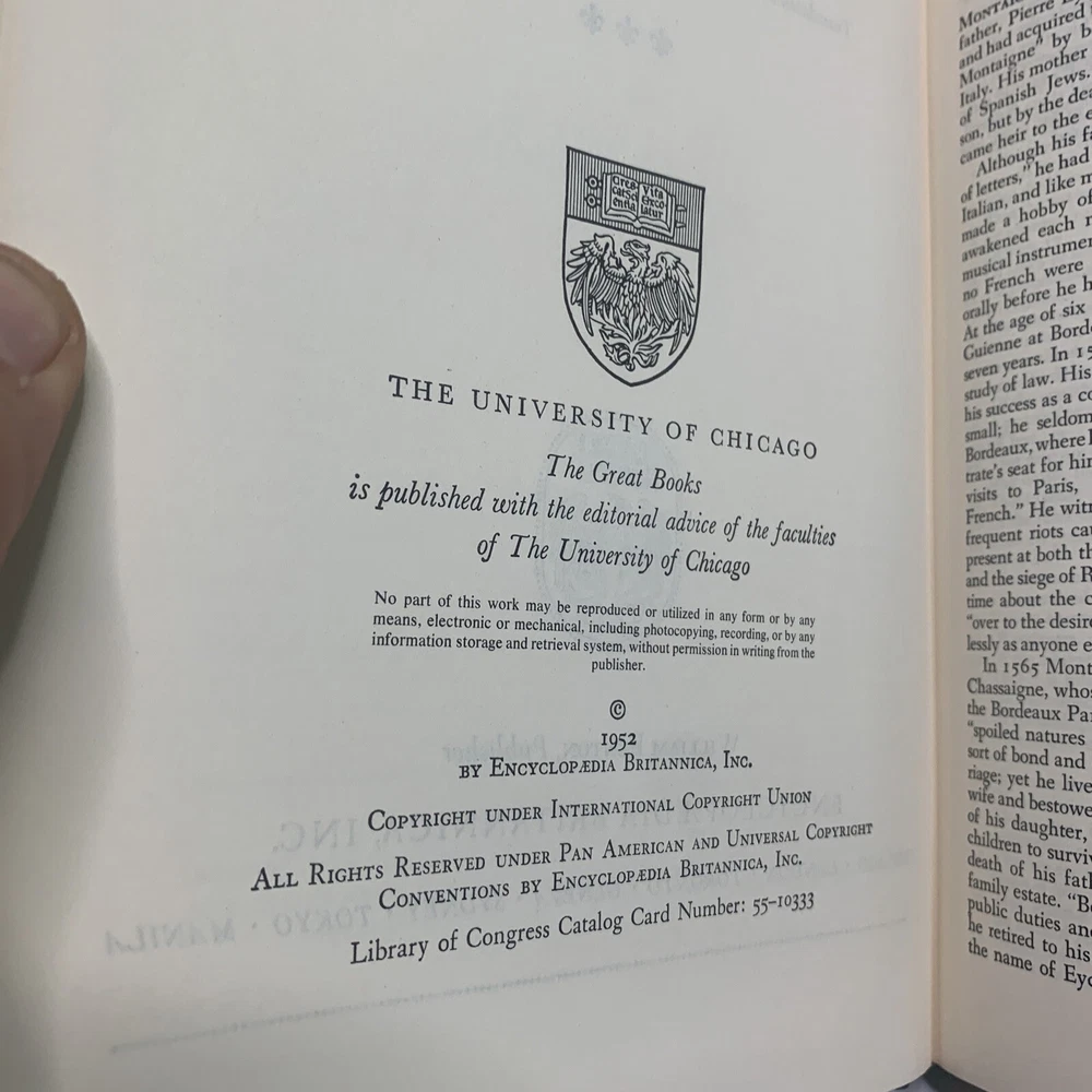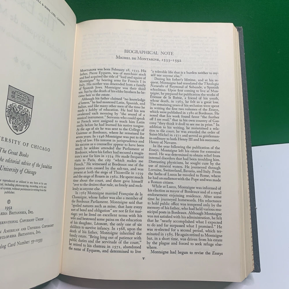 Vintage 1952 Great Books Of The Western World #25 MONTAIGNE Condition is vintage very good The Item Pictured Is The Item You Will Receive. Please Look At The Photos To Ensure Condition And Decide For Yourself. We combine shipping to save you money Thanks for looking!!! We have a large collection of magazines, books, newspaper, postcard, photos, booklets, and much more! Please ask about discounts on purchases. We have many more items that are not posted yet!