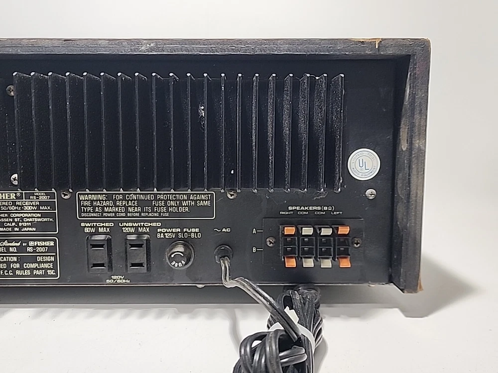 Vintage 1970's Fisher RS-2007 AM/FM Stereo Receiver ~ 75WPC into 8Ω (stereo) This vintage receiver is fully functional. However, the backlight bulbs are out and need to be replaced. The back antenna is broken __________________________________________________________________________________________ The photos represent exactly what you will receive. If it is not pictured, it is not included in the order. Please utilize the zoom feature on the photos to examine the cosmetics of the item for yourself. For orders with "Free Shipping", we reserve the right to use the most cost-effective shipping method available. In-store pickup is only available by prior arrangement. Shipping: We ship all items within one business day of receiving your payment, excluding weekends and holidays. Additional shipping fees will apply for all Alaska, Hawaii, and U.S. Territories (Guam, Puerto Rico, Virgin Islands, etc.) shipments. Shipping a large item to a PO Box, APO, or AFO zip code will also incur additional shipping fees. Damages: If items are damaged during transit, a claim should be filed with the carrier. We can file the claim on your behalf if you wish, but please contact us immediately if this happens, as we cannot be held responsible for how packages are handled during shipping. Please save the box and all packaging material for carrier inspection. Feedback: We include these additional lines for our mutual protection, but if you check our feedback, you can trust that we go out of our way to ensure the satisfaction of our buyers, as our business is only as good as our reputation. Please contact us immediately if there is a problem, as we cannot solve it if we are not made aware of it. Please do not leave bad feedback if there is an error but give us the chance to make it right. Disclaimer: All items that we list on eBay are in good working condition at the time of listing, unless otherwise noted. If we are unsure, we will indicate it in the listing. Please do not expect us to take back an item if it has not been fully tested. Although it worked when we tested it, there are no warranties offered or implied. Please ensure that you know what you are purchasing . We do not guarantee compatibility with your software, hardware, or electronic equipment, nor can we be held responsible for buyer's remorse. We want you to get what you want, so please understand your risks and ask all questions before making a purchase. Not all equipment can be tested for 100% functionality. Some items are tested for basic power-up capability only. If something is not in the pictures or description, it is most likely not included, unless it is specifically listed as included.