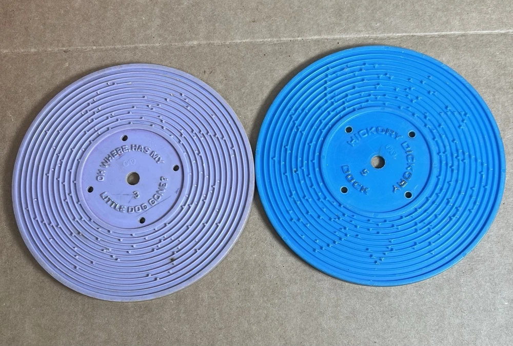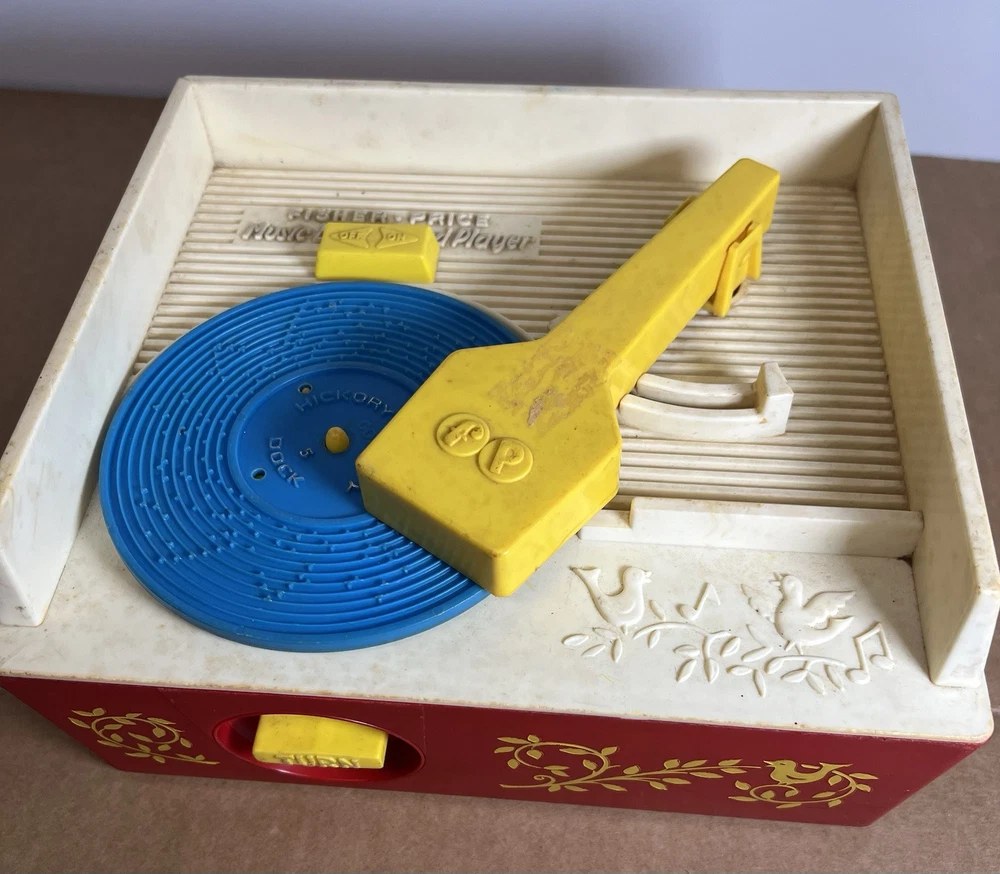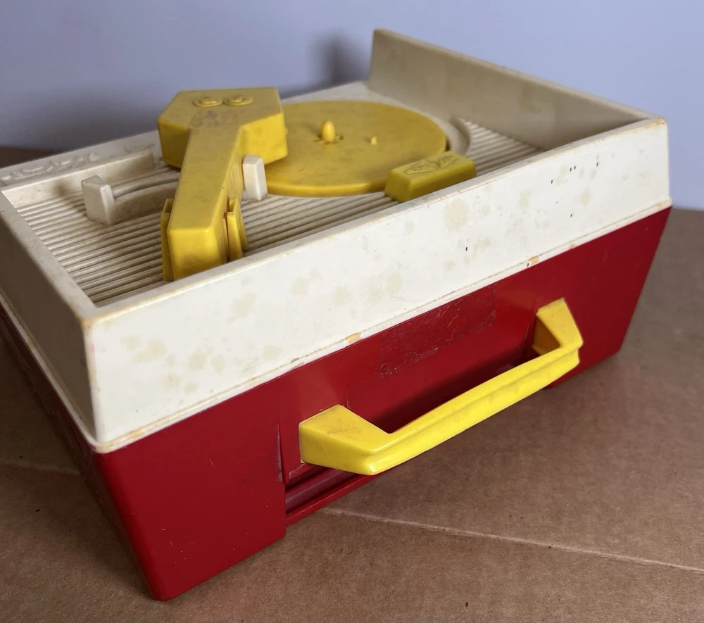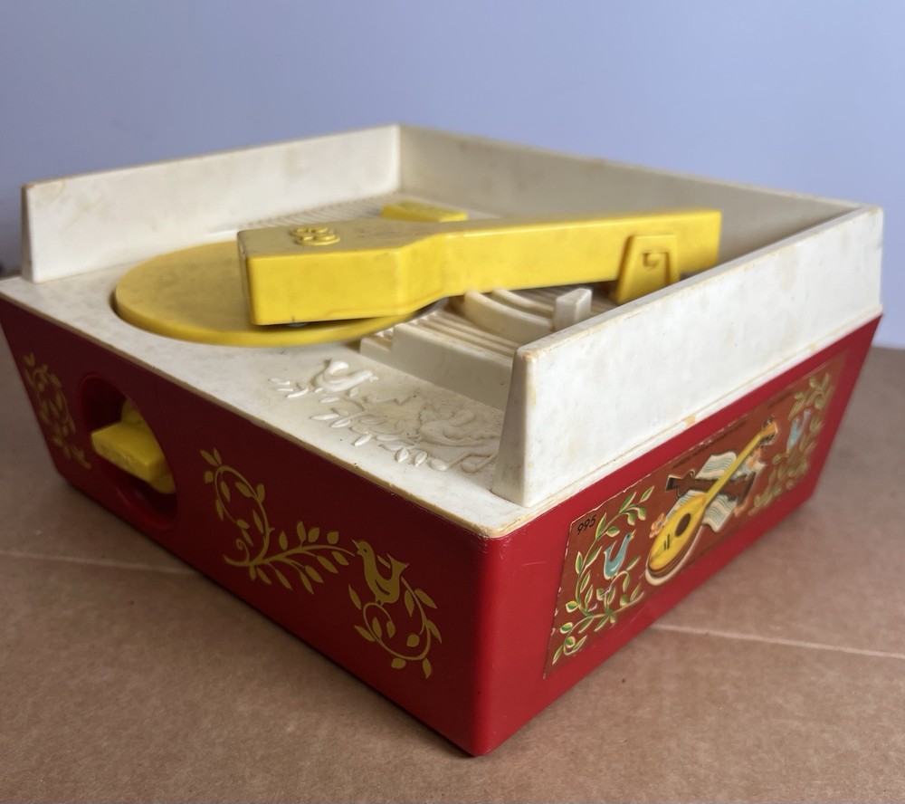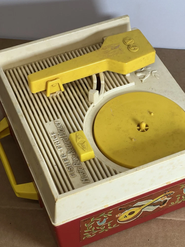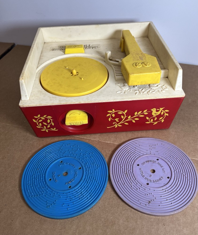 Vintage 1971 Fisher Price Music Box Record Player & 2 Records This was in the basement of an estate we have been cleaning out. Kids toys from way back. We wound it up and put a record on it an it works. We only found to records. Both work fine. This looks to be in great condition. We have not cleaned it but assure you it will shine right up. It still has the paper stickers on both sides. No cracks chips or damage. Two records with the following HIT songs: Hickory Dickory Dock Edelweiss London Bridge Where has my little dog gone We use plenty of detailed pictures so you know exactly what you’re getting. You will receive the exact item shown. Shipping is same day. All items are packed extra secure and tracking is provided. View pictures. Ask questions. Make offers
