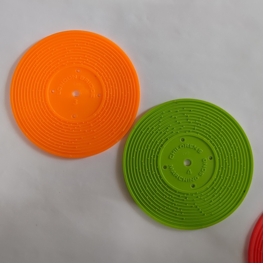 This vintage 1971 Fisher-Price replacement record set includes 5 records with a total of 10-songs to play. The records are in excellent condition and have been well-maintained.