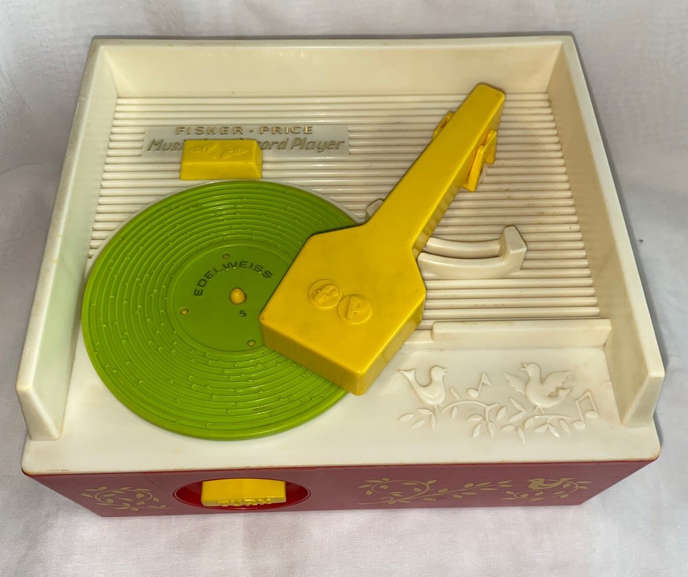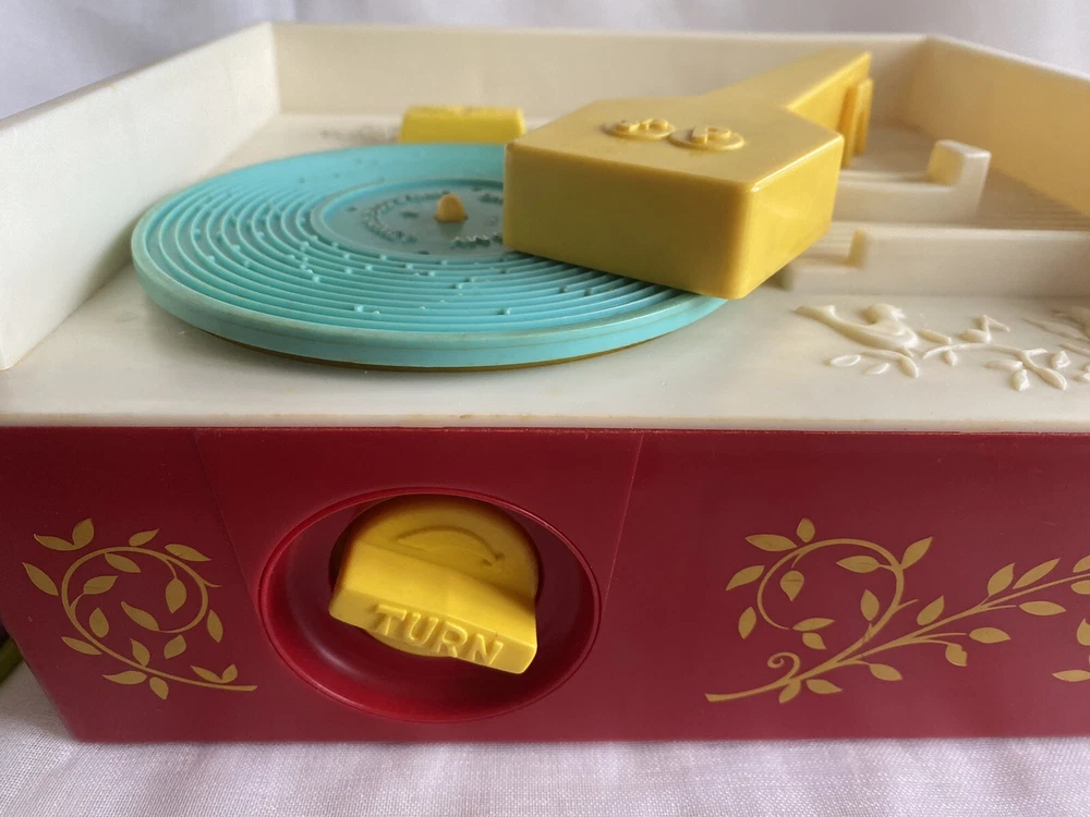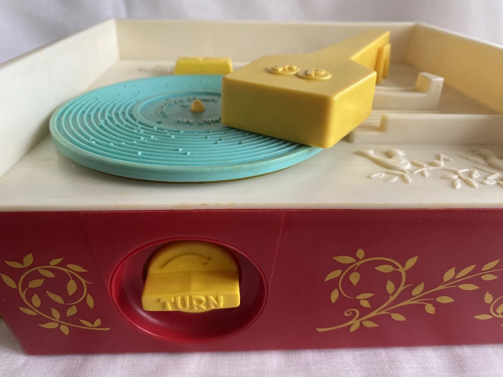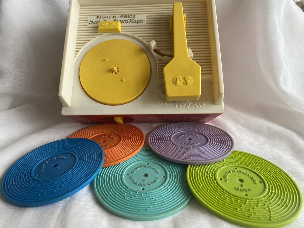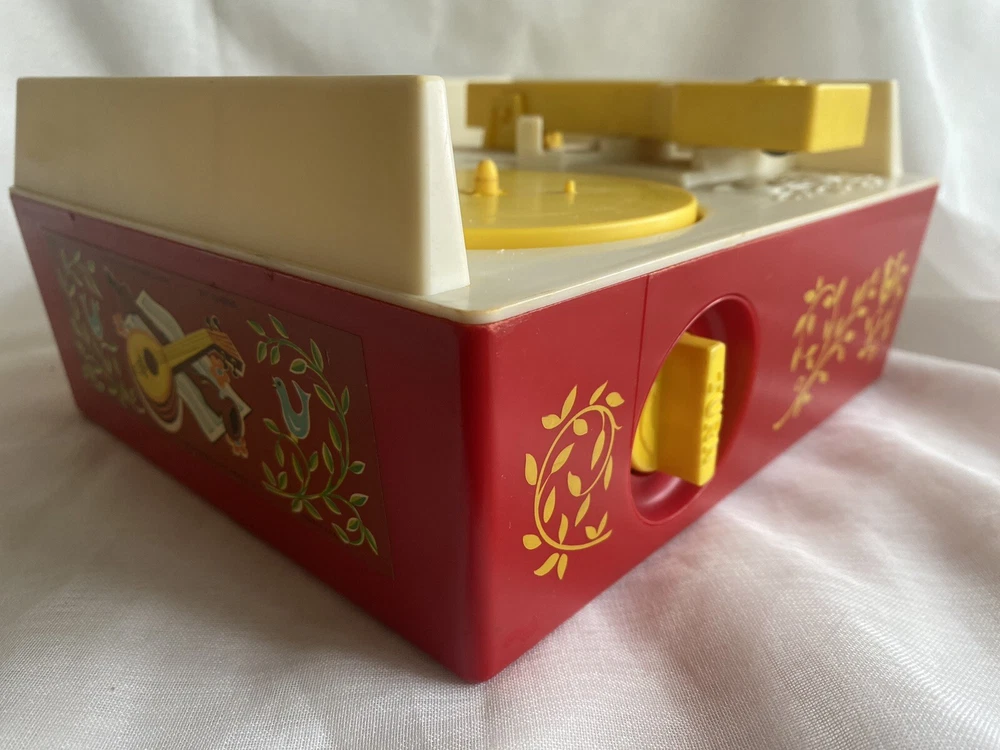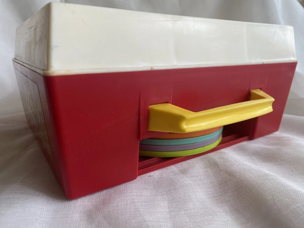 Vintage 1971 Fisher Price Music Box Record Player ๐ถ Includes all 5 original two sided toy records! One family owned and VERY gently used (my mom was insistent that we took care of our toys). This record player still works, and records still play their songs. Well cared for toy, winding mechanism still works and records still play (and sound remarkably good, given its ageโฆor maybe thatโs my nostalgia as I reminisce on listening to this close to 5 decades ago ๐)