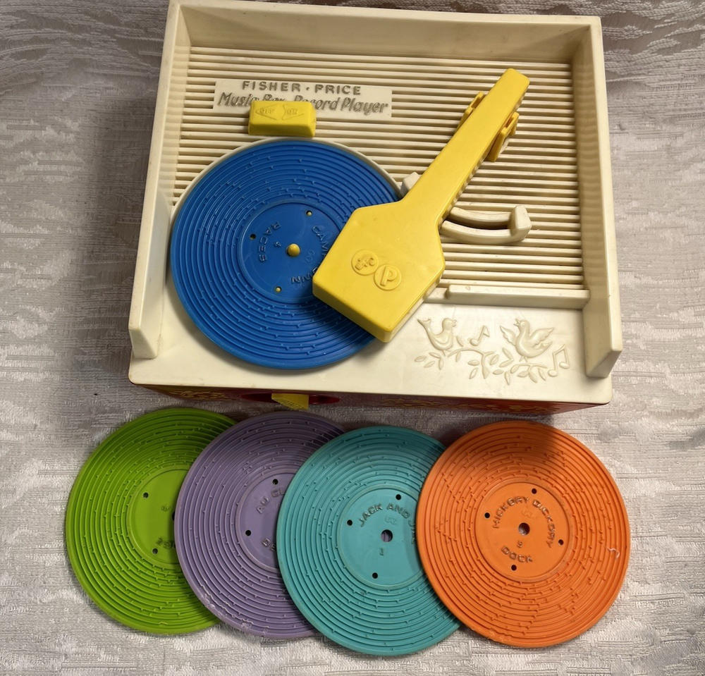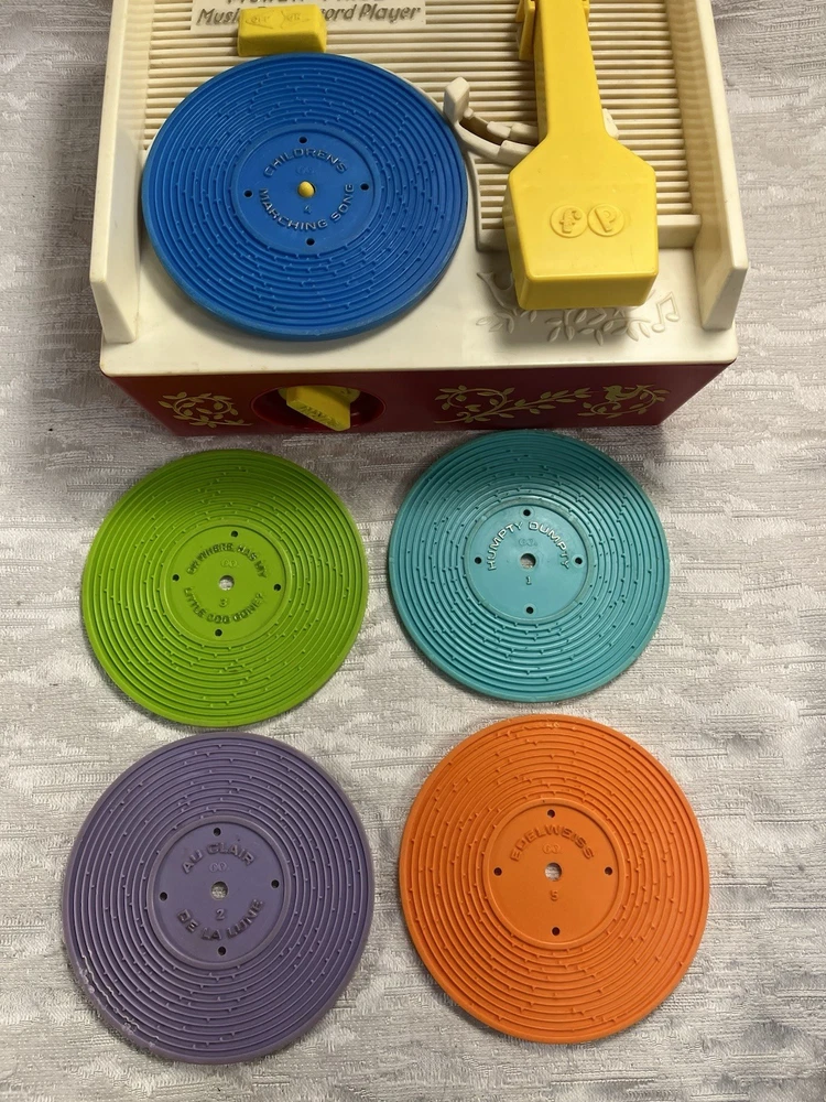 This is a Vintage 1971 Fisher Price music box record player with 5 records tested Works Clean. The item pictured is the one that you will receive. Thank you for shopping with us any questions please ask and see our other store listings. If you have questions please ask before bidding or purchasing.