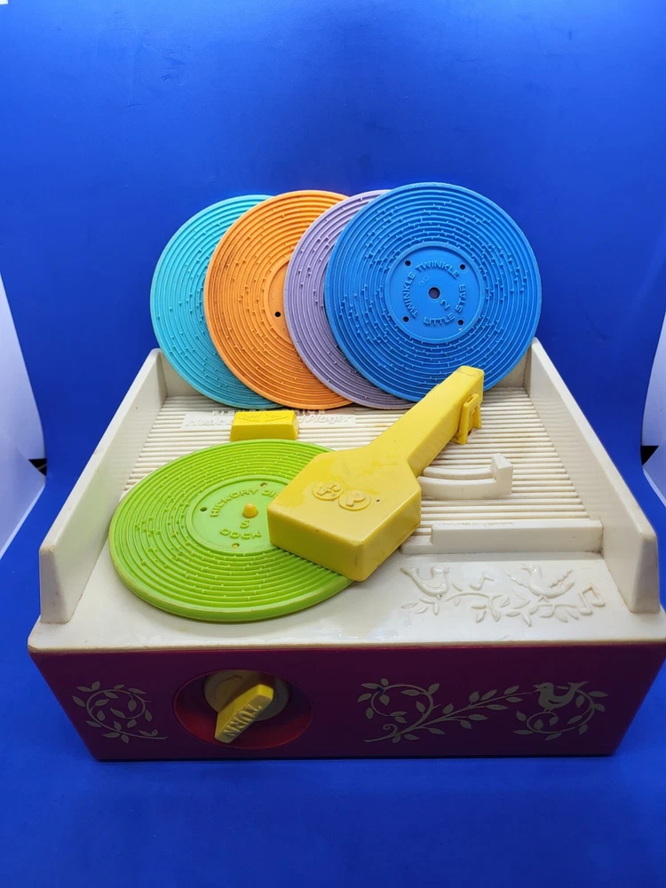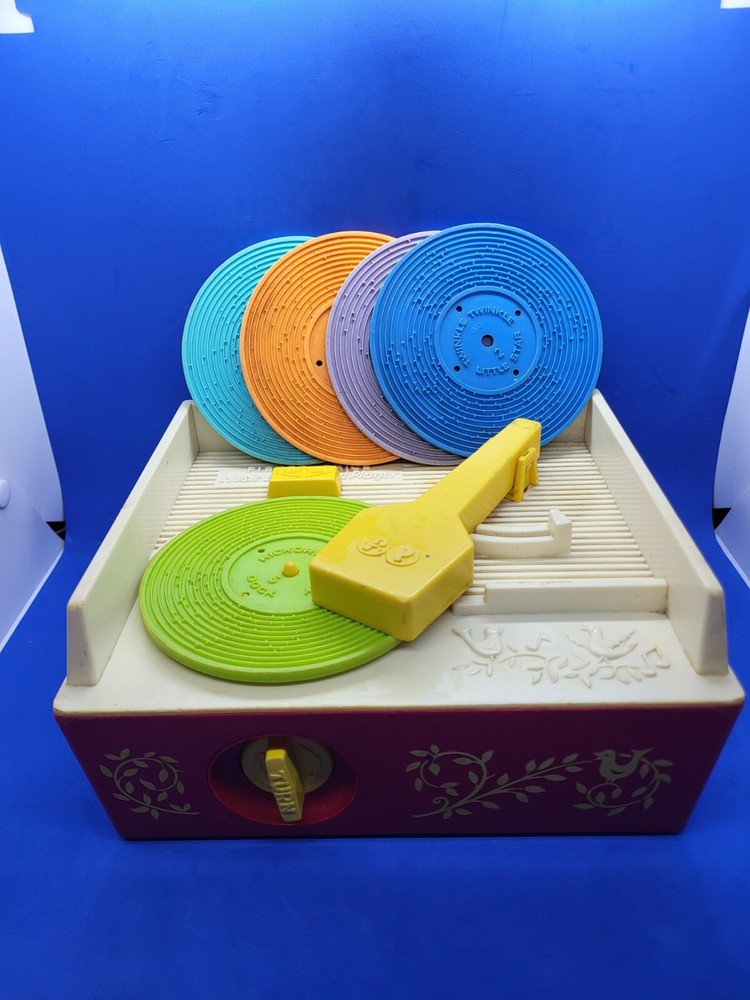 The Vintage 1971 Fisher-Price #995 Music Box Record Player is a classic toy that offers a nostalgic touch for children and collectors alike. Made in the United States, this music box features a wind-up mechanism that plays soothing music while spinning a colorful record player. With five different records to play, this toy is perfect for young children aged 3 and up, as well as older kids who appreciate retro toys from the 1970s. The gender-neutral design makes it appealing to both boys and girls, and its vintage charm adds a unique element to any toy collection.