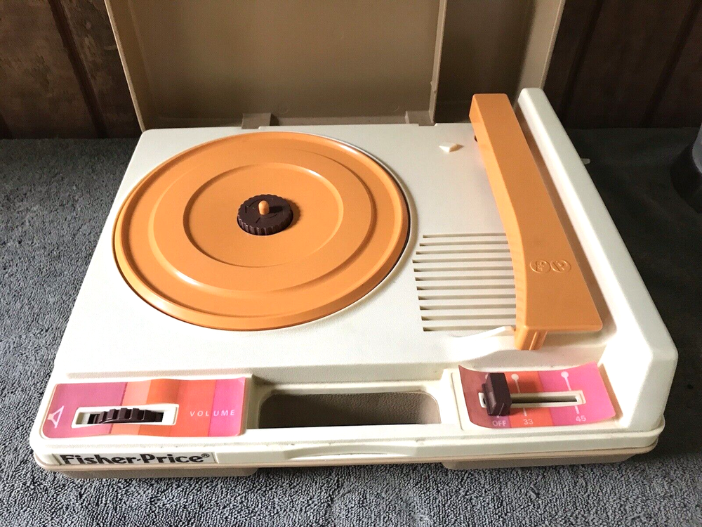 Vintage 1978 Children's Record Player/ Turntable by FISHER PRICE TOYS Great Condition. The turnable turns when plugged in. The needle makes a sound when touched. The colorful stickers have come up on the edges. Can be glued back down Check out my Ebay store: djamesk | eBay Stores