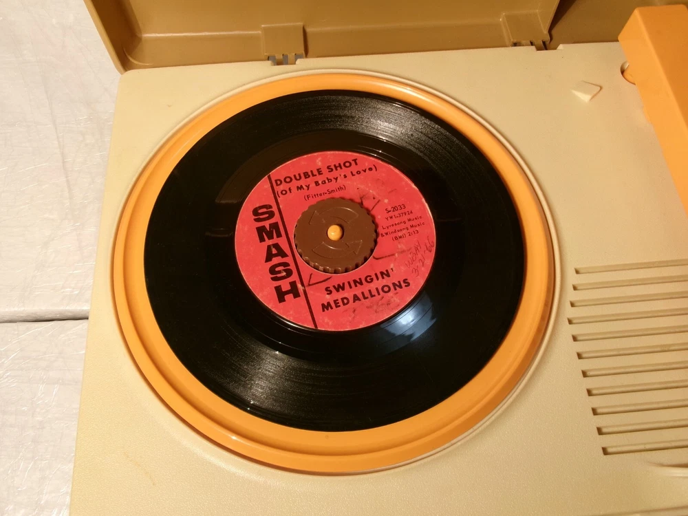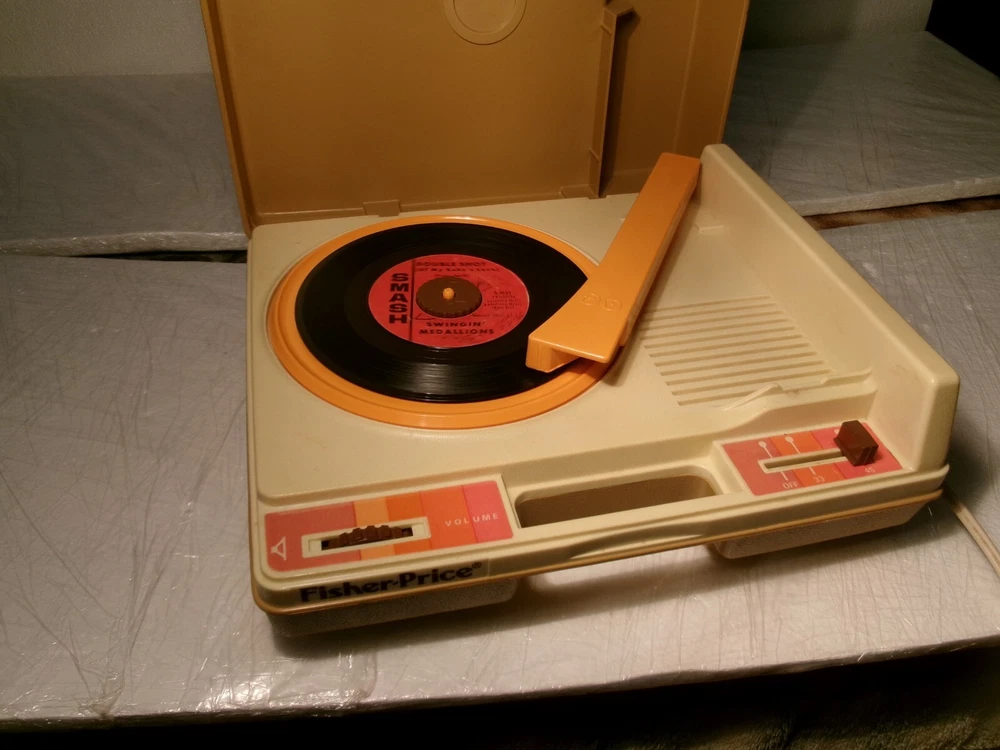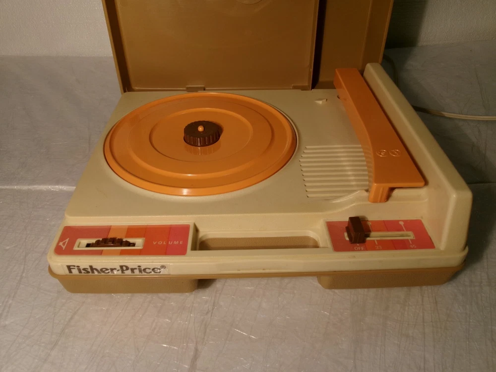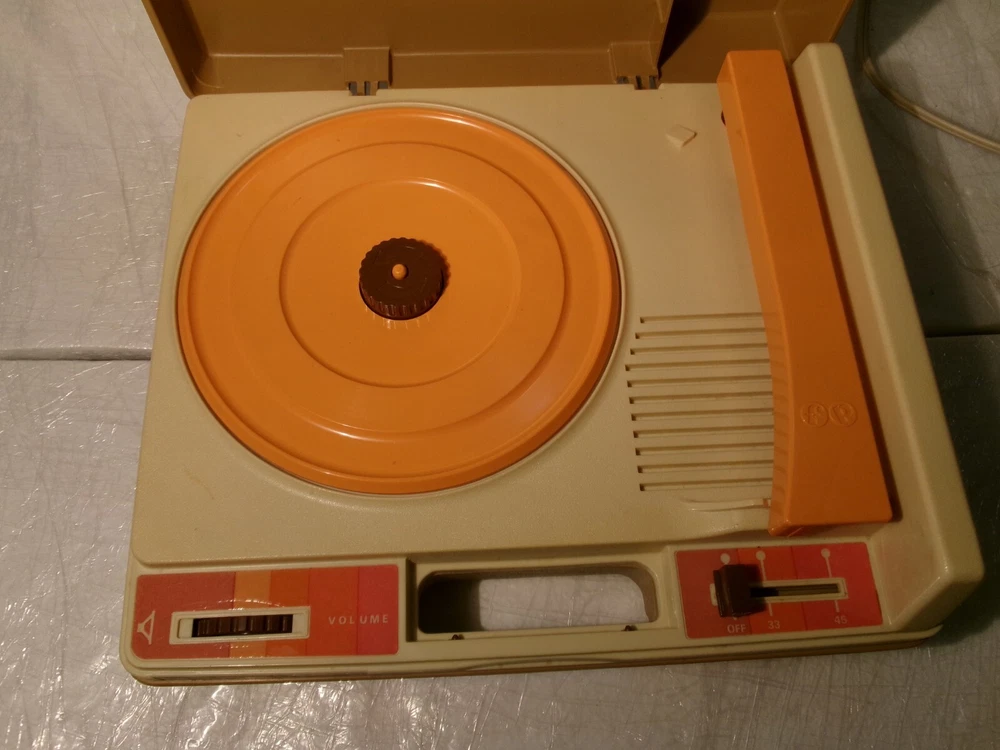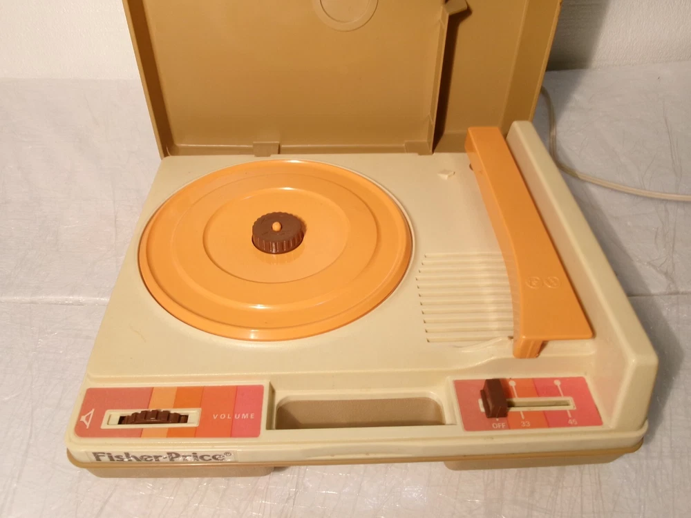 Vintage 1978 Fisher Price 33lp/45rpm #825 Portable Record Player Turntable. I tested this with a 33 lp and a 45 rpm record and both play fine. Good used condition with some normal light wear from age and previous use. Please look over all the photos carefully and thank you for looking.
