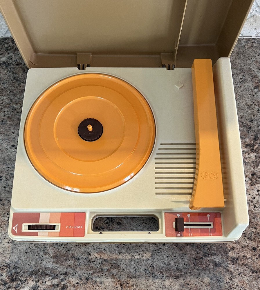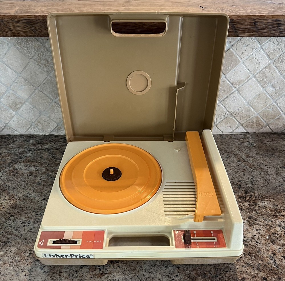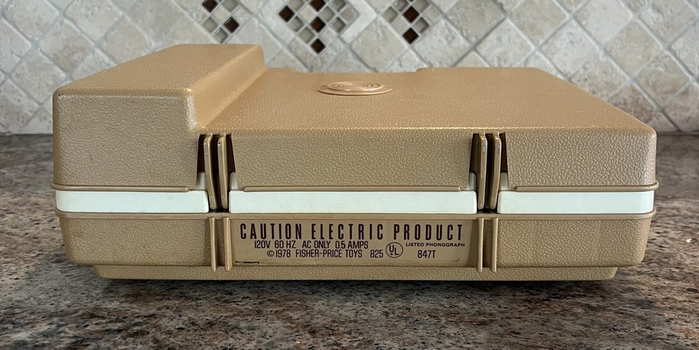 This vintage 1978 Fisher Price #825 Portable Phonograph Record Player is in great pre-owned condition. The player has 2 speeds: 33 and 45 RPM. Nice, mostly clean working condition. There is some surface imperfections that should clean off. I have tested item, and it appears to work great. I do not have an album to play, but the unit turns on, spins, and the speakers appear to work. Nice collectible vintage piece! Please see photos for the condition and size of the item you will receive. I do my best to show any and all imperfections in the photos. Ships with care.