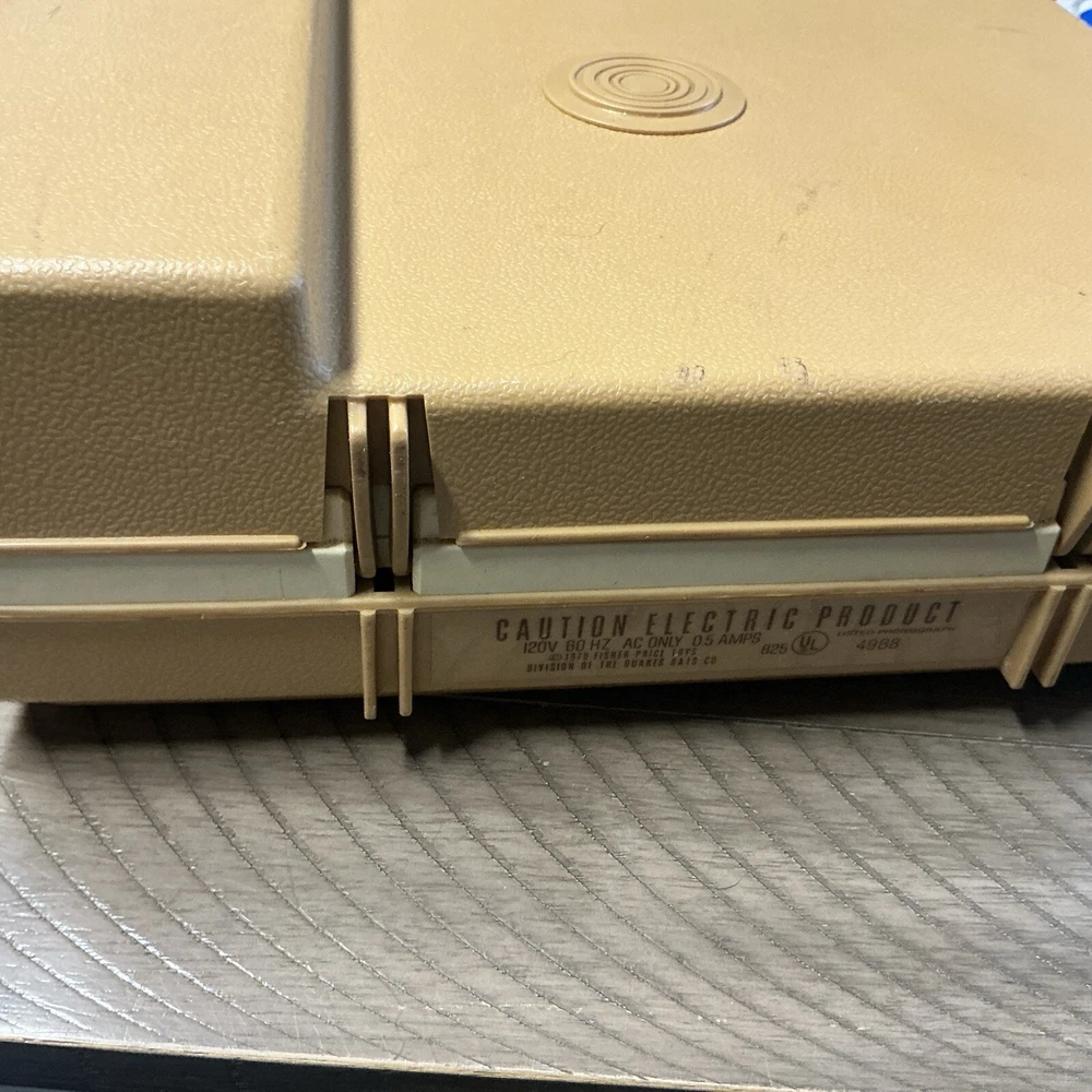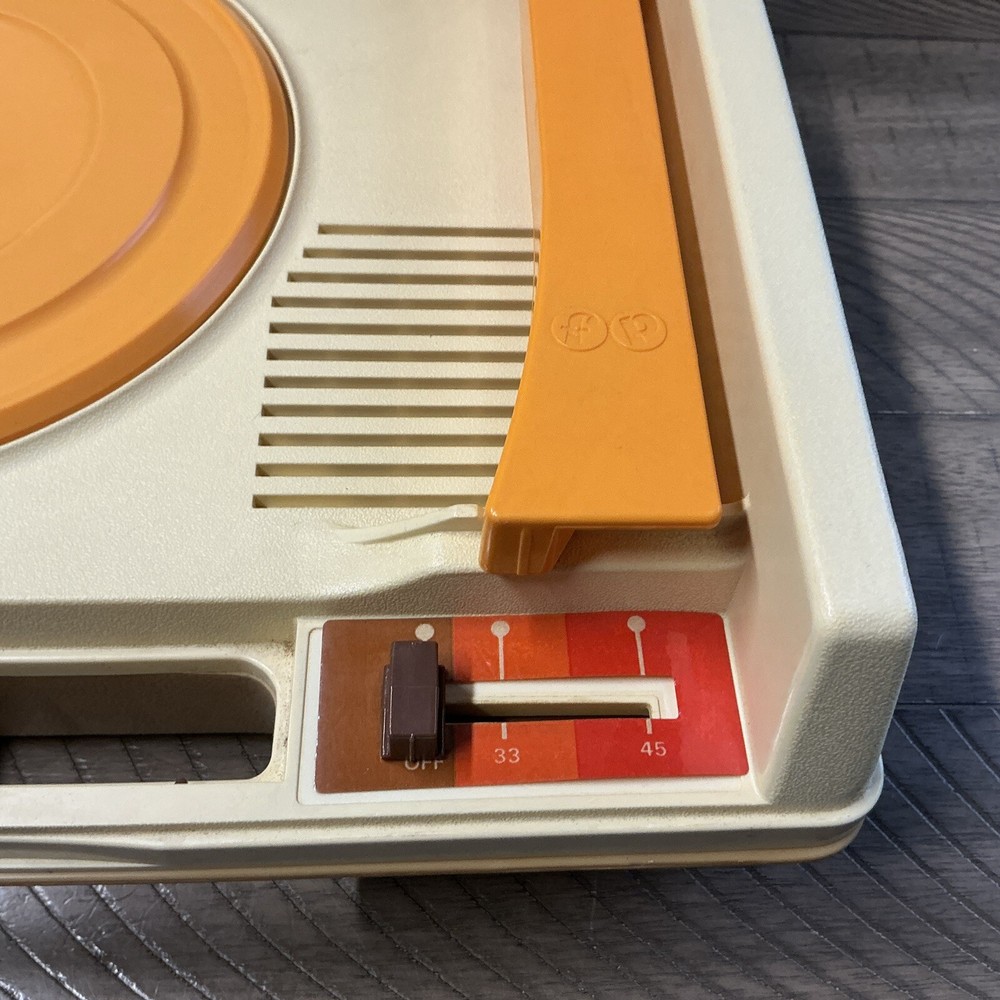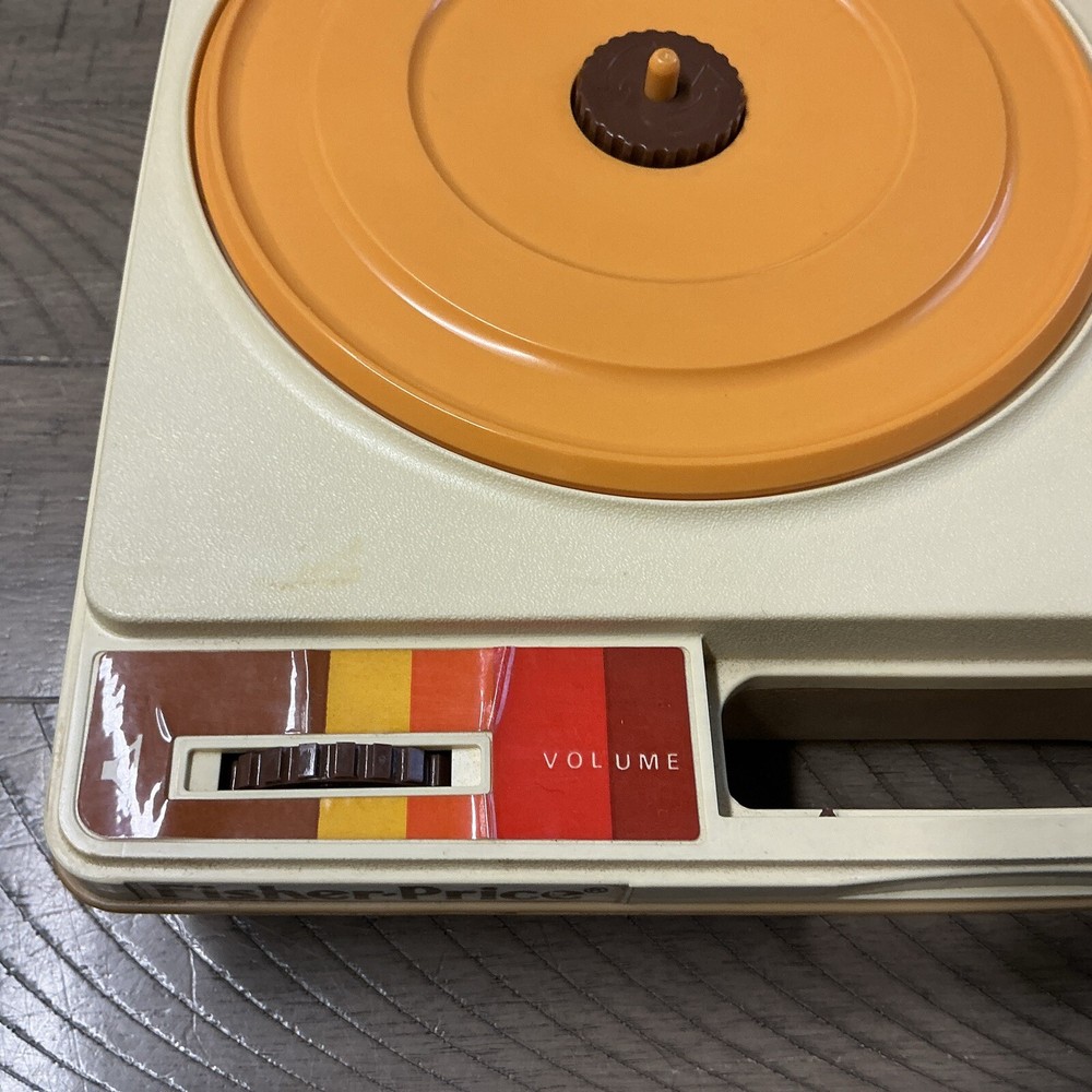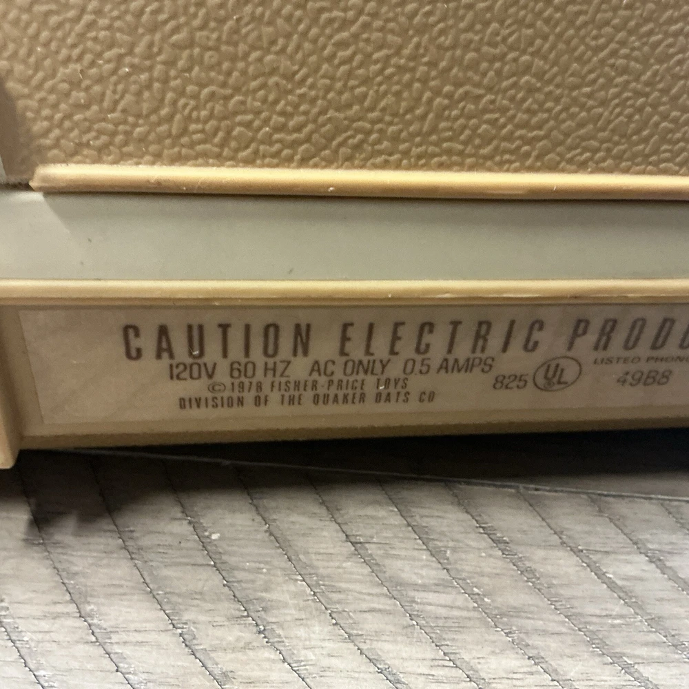 The vintage Fisher-Price Record Player Model 825, produced in 1978, is a kid's phonograph turntable. This classic toy from the well-known brand features a retro design and plays records to entertain children with music. It is a collectible item that offers a nostalgic touch to any toy or music collection. Powers up and table spins at both speeds. Unable to test sound (no records available) Sold as is