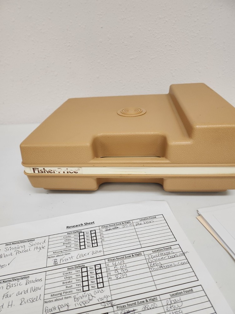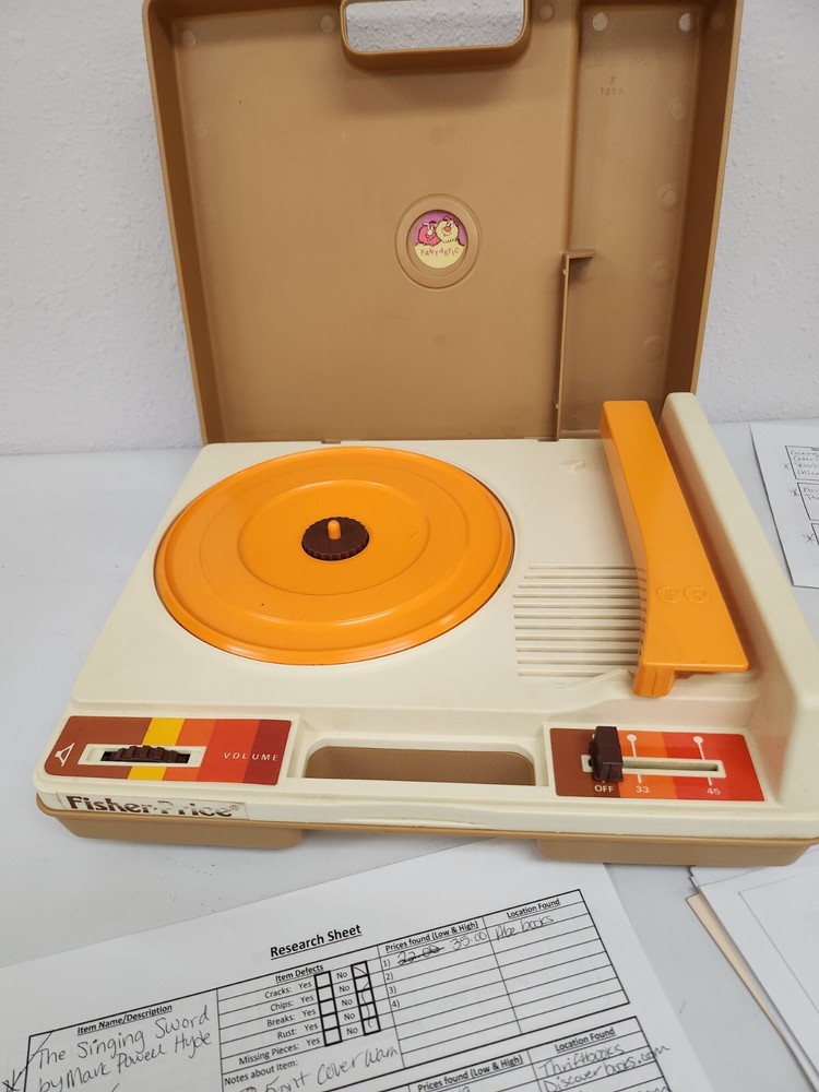 Relive the good old days with this vintage Fisher-Price record player from 1978. This classic toy is perfect for children aged 6 and above and features a charming design that is sure to delight kids and adults alike. Whether you're a collector or just looking for a fun toy for your child, this vintage record player is a great choice. The Fisher-Price record player is made with high-quality materials and is designed to be safe and easy to use. It is a great addition to any collection of musical toys and is perfect for kids who love to play and pretend. So why wait? Order your vintage Fisher-Price record player today and enjoy the nostalgia of a bygone era.