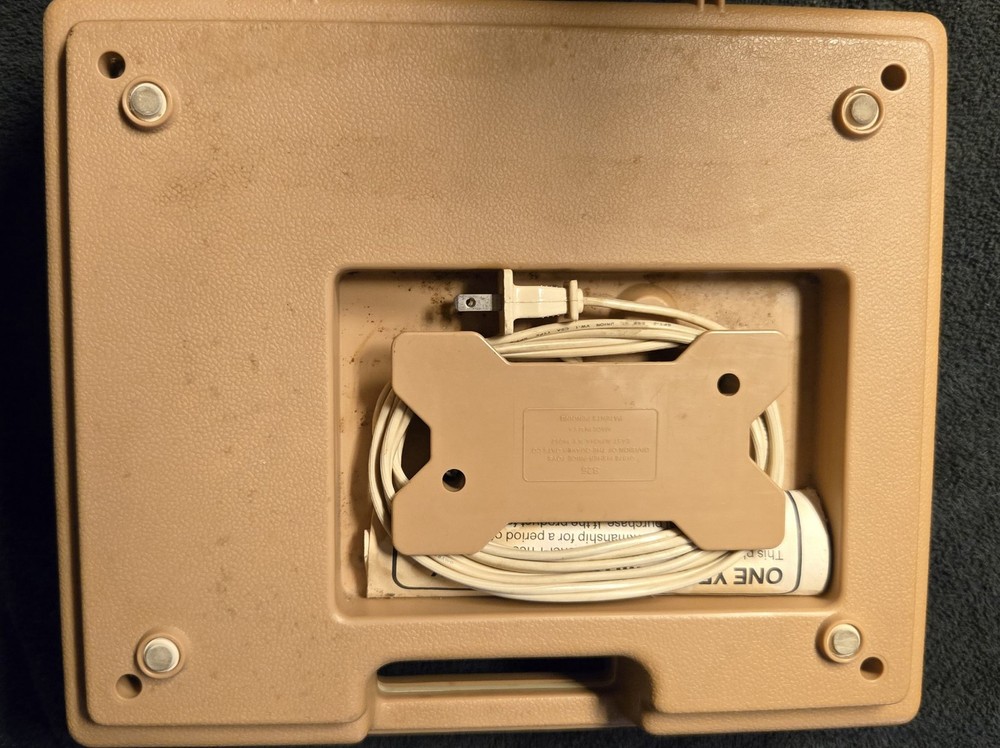 Intact. Powers up, turns and needle scratches, I don't have an album to play on it. Could use a thorough cleaning...