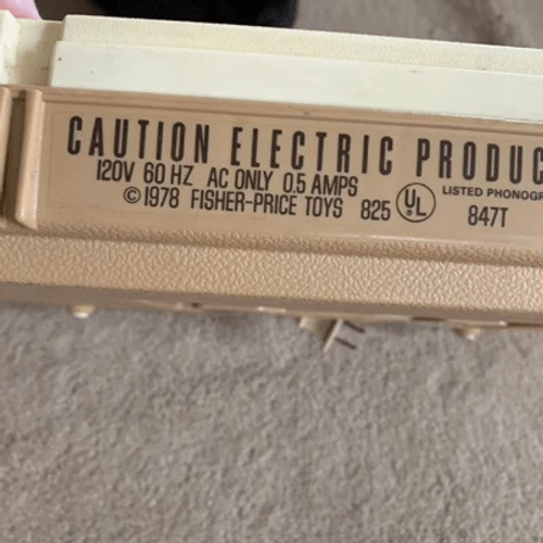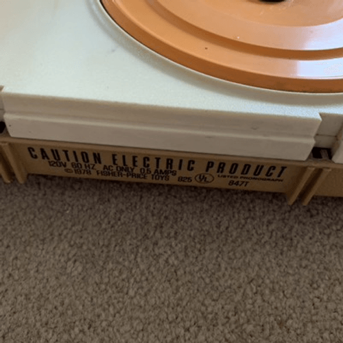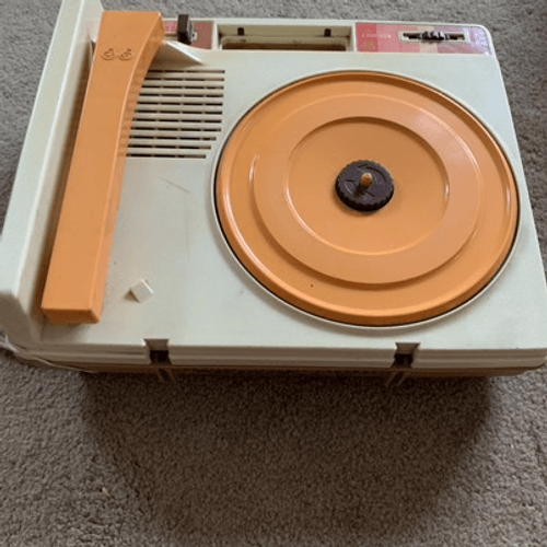 Vintage 1978 Fisher Price Record Player Phonograph-No Lid. Turntable spins, there is no needle, so I couldn’t test it. Knob for record speed it’s a little hard to move.
