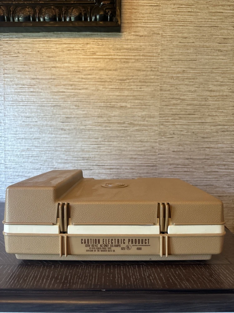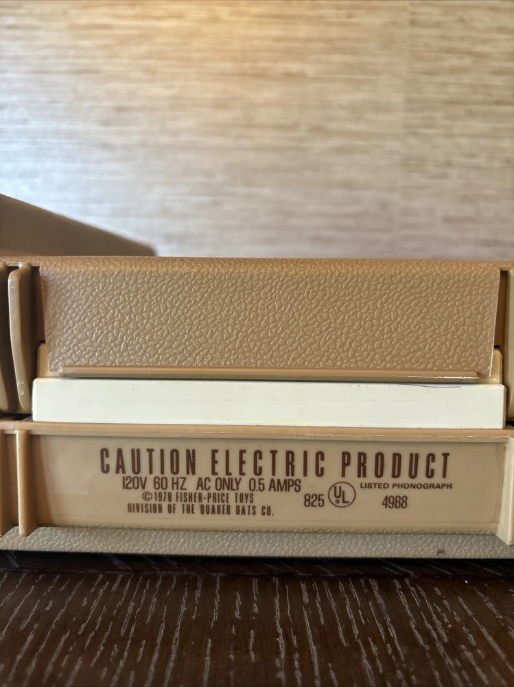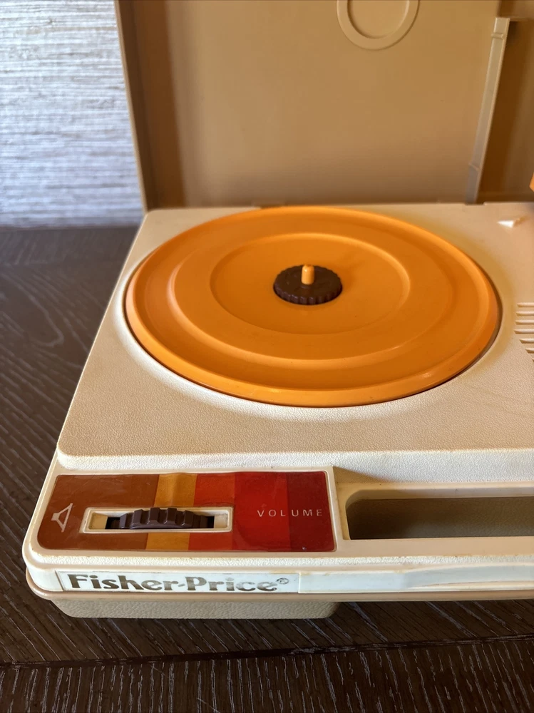 This vintage Fisher Price turntable is a true classic from 1978. It's the perfect addition to any toy or music collection. With the ability to play both 33 and 45 RPM records, this record player is a blast from the past. The iconic design features a bright and colorful exterior, complete with the classic Fisher Price logo. This vintage record player has been tested and is in good working condition, but appears to need a replacement needle. It's sure to provide hours of entertainment for children and adults alike. Don't miss out on the opportunity to own a piece of nostalgia with this vintage Fisher Price record player.