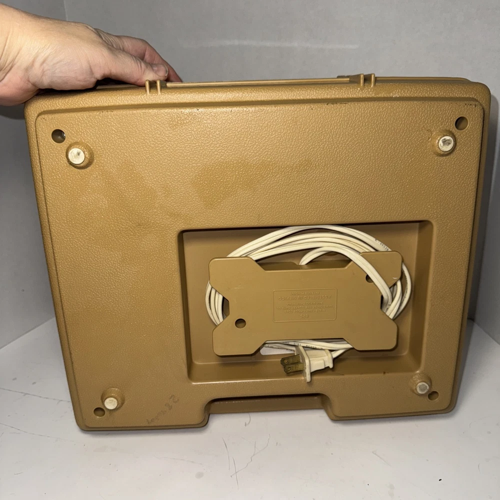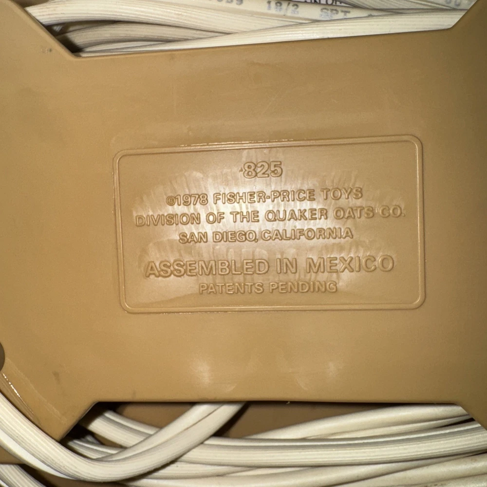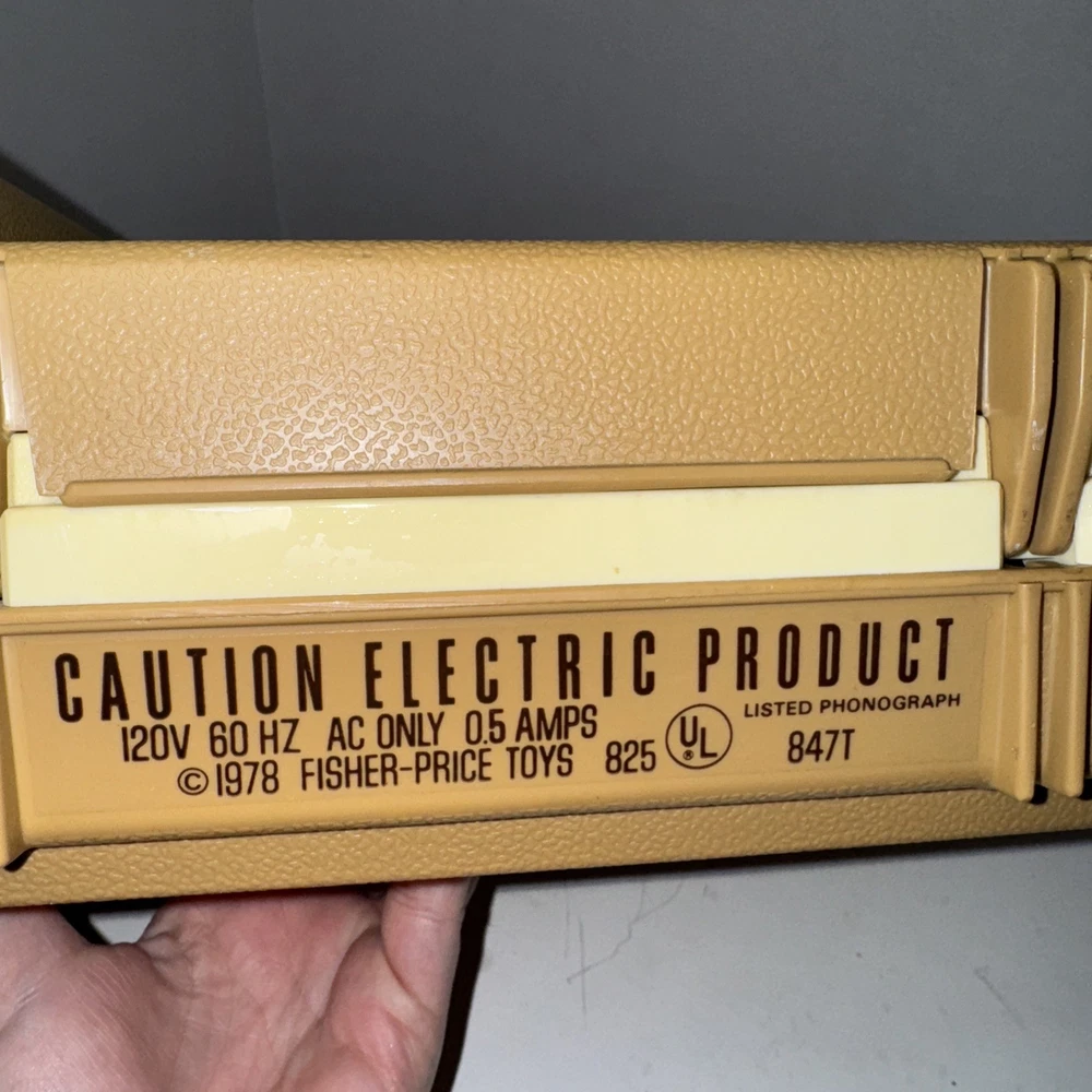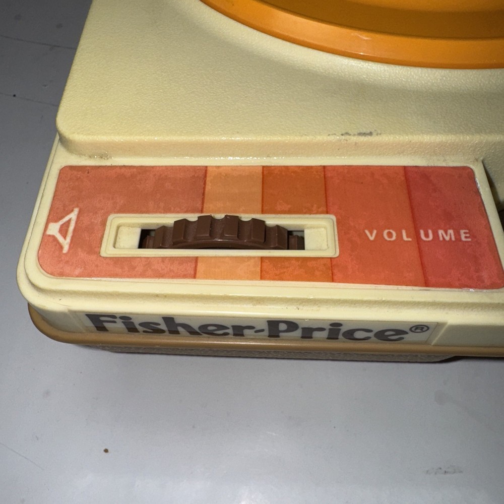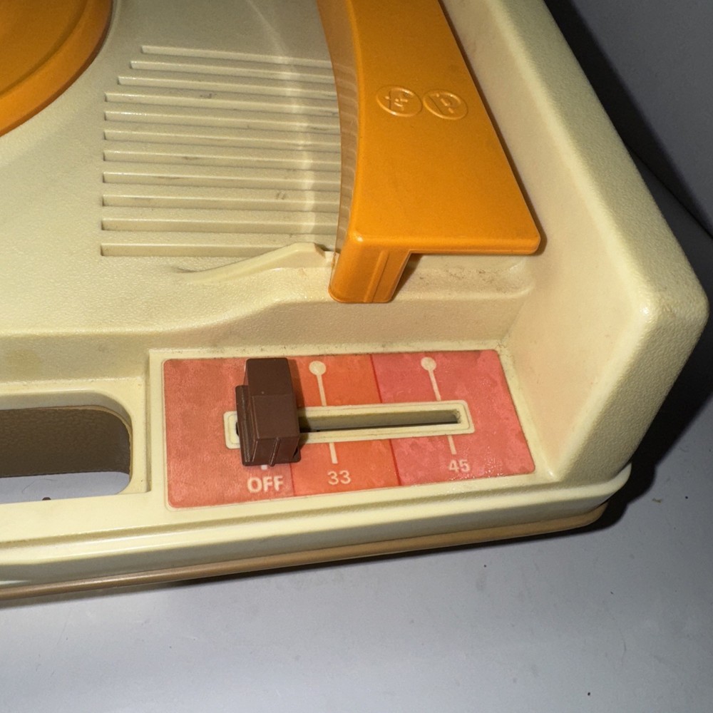 The Vintage 1978 Fisher Price Vinyl Record Player is a classic toy for children aged 4 and above. This retro piece from Fisher-Price features a light brown case with orange accents, giving it a charming and nostalgic appeal. Made in the United States, this toy provides hours of imaginative play as children pretend to be DJs, mixing and playing vinyl records. Perfect for young musicians or collectors, this vintage record player is a must-have for any retro toy enthusiast.