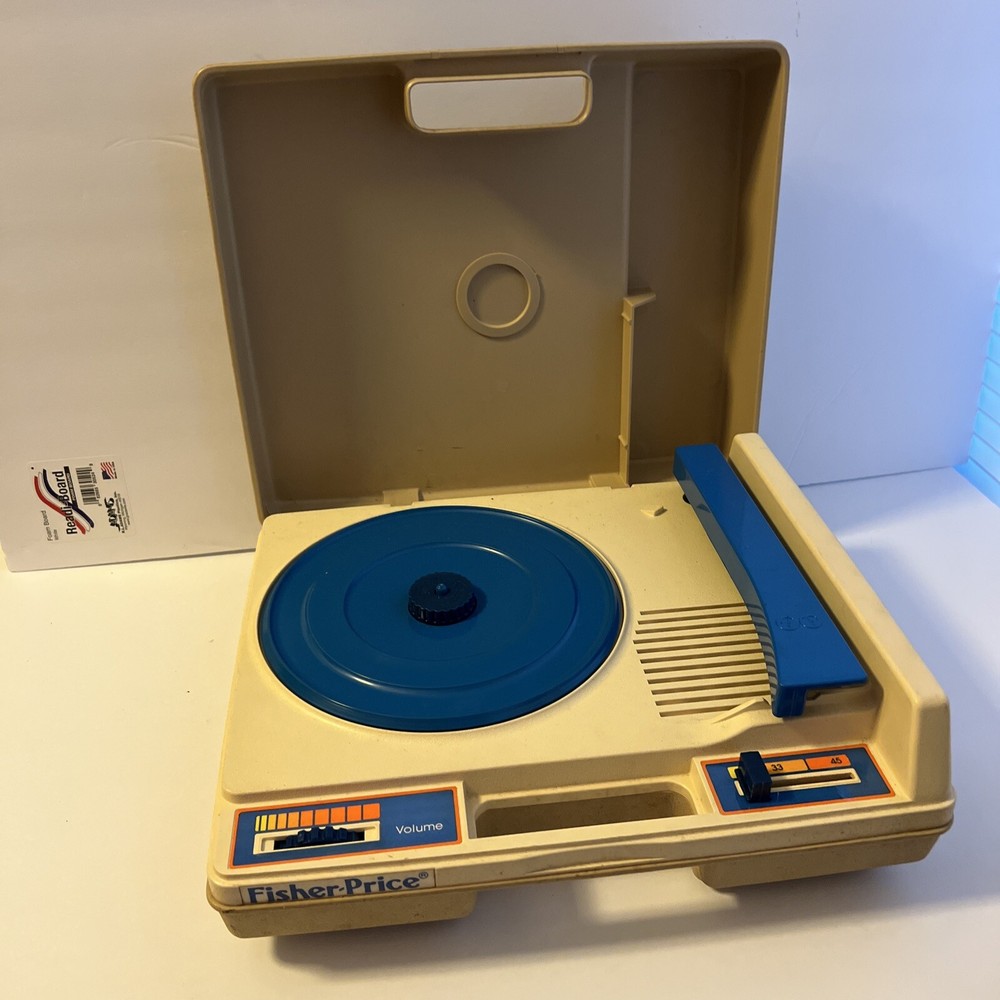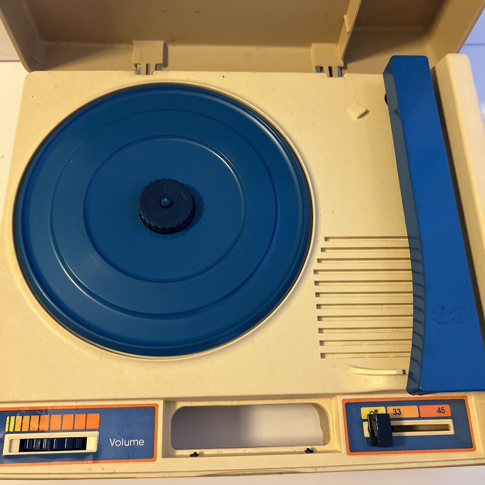 Vintage 1978 Fisher-Price Phonograph 825 Record Player Toy Works Tan Blue. Works great