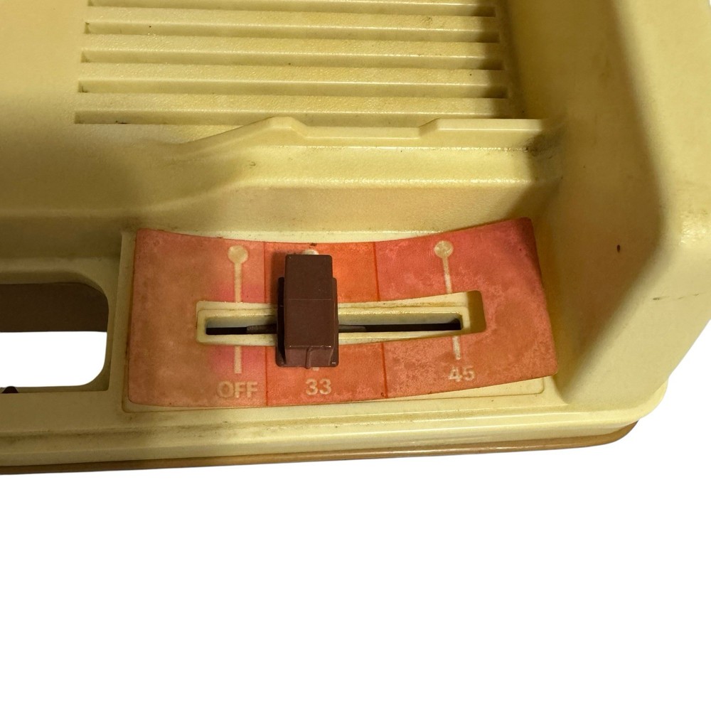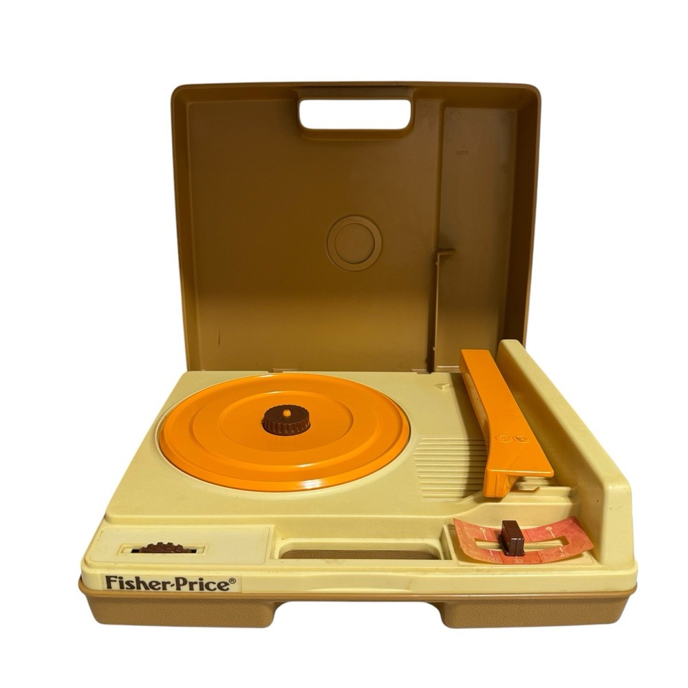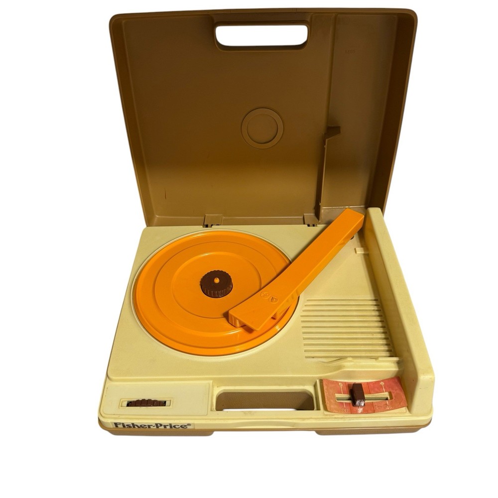 The Vintage 1978 Fisher-Price Record Player Portable Phonograph #825 is a classic toy that works with both 33 and 45 records. Made in the United States, this portable phonograph is perfect for young children aged 3-7, offering hours of imaginative play. The Fisher-Price brand is well-known for its high-quality educational toys, making this record player a timeless addition to any child's collection.