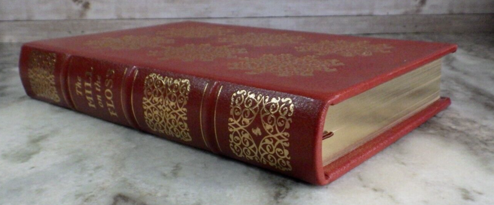 This beautiful book looks to be in excellent to NM condition. Mom had many books never opened. Proper old-school leather-bound George Eliot MILL ON THE FLOSS Satin and gold accents Really great! SHIPPING DISCOUNTS WITH ADDITIONAL PURCHASES. Thank you!