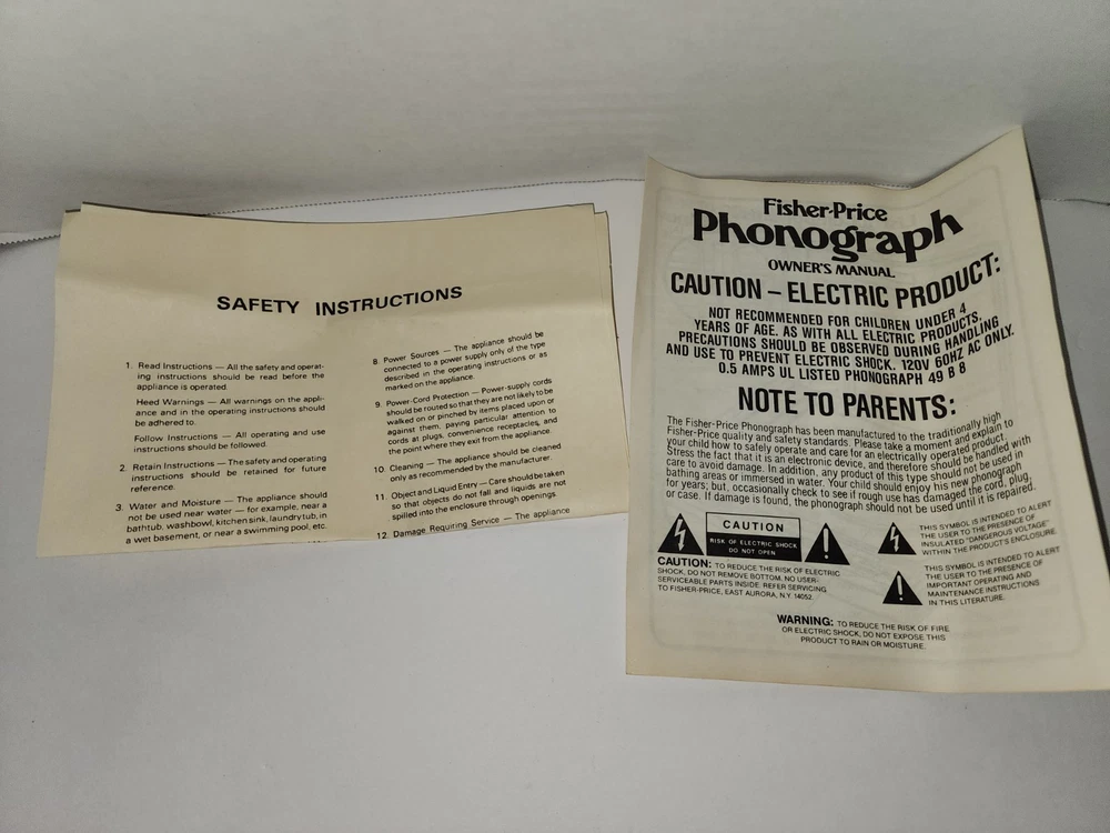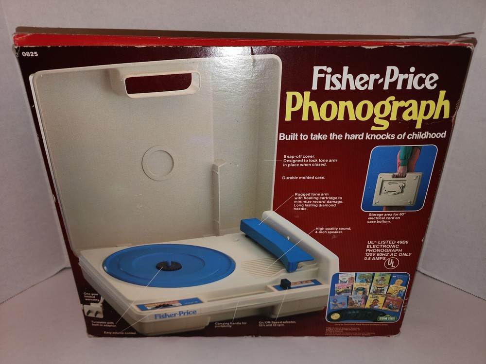 Vintage 1984 Fisher Price Phonograph Record Player With Box and Instructions Tested. Works when plugged in. Parts move. No record to test sound.