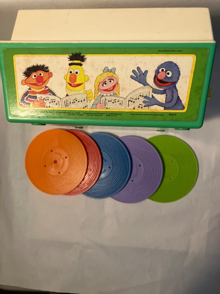 This Fisher Price Sesame Street Music Box Record Player comes with 5 records with 2 songs on each. This is a rare vintage 1984 Sesame Street Record Player. This will be a wonderful collection addition for any fan of the beloved Sesame Street TV show. It features the iconic character Big Bird and plays records. The player was manufactured in 1984 by Fisher Price and is a wonderful piece of Sesame Street merchandise that would make a great addition to any collection. This Sesame Street Music Box Record Player is a wonderful find for those who are looking for a unique and rare item to add to their collection. See my other auctions for more items... Please see all of the photos for cosmetic condition of actual item you will receive. Item is shipped within 3 business days after receipt of payment (excluding holidays and weekends). If you have any questions, please ask before bidding on item. No Returns or Warranty