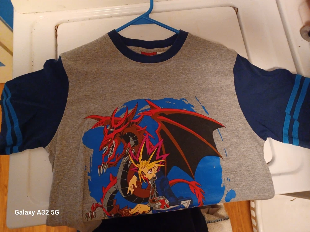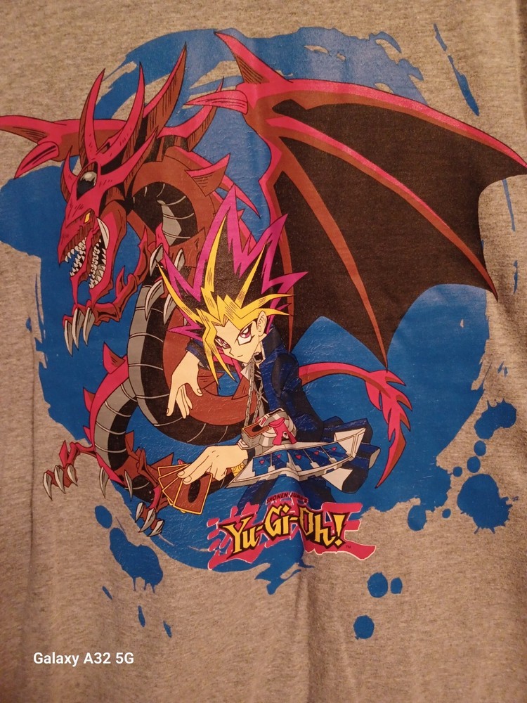 This vintage 1996 Shonen Jump's Yu-Gi-Oh! shirt features the powerful Slifer The Sky Dragon character. The shirt is designed for teens with a size of L and is made of gray cotton. This pre-owned shirt has a regular size type and is perfect for fans of the Yu-Gi-Oh! franchise, specifically the character family of Slifer The Sky Dragon. The shirt is suitable for casual wear and is a must-have for collectors of vintage clothing items.