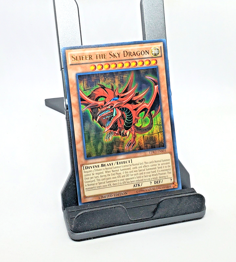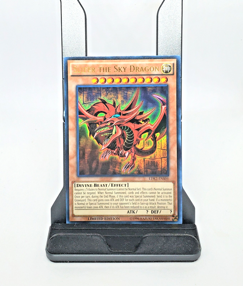 Step into the realm of ancient Egyptian mythology with the iconic Vintage 1996 Yu-Gi-Oh Holo Slifer the Sky Dragon card. This Ultra Rare collectible from the revered - Yugi - set is a must-have for enthusiasts and collectors alike, featuring the legendary creature Slifer the Sky Dragon in all his glory. Proudly manufactured by Konami, this card bears the distinction of being an original release, encapsulating the rich history of the Yu-Gi-Oh! TCG. Its holographic finish adds a mesmerizing touch to the already impressive design, making it a standout piece in any collection. Embrace the nostalgia and power of this timeless card from 1996.
