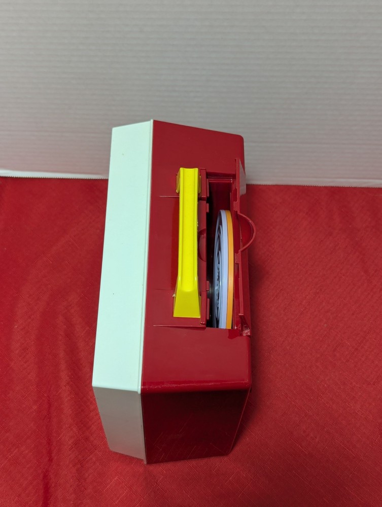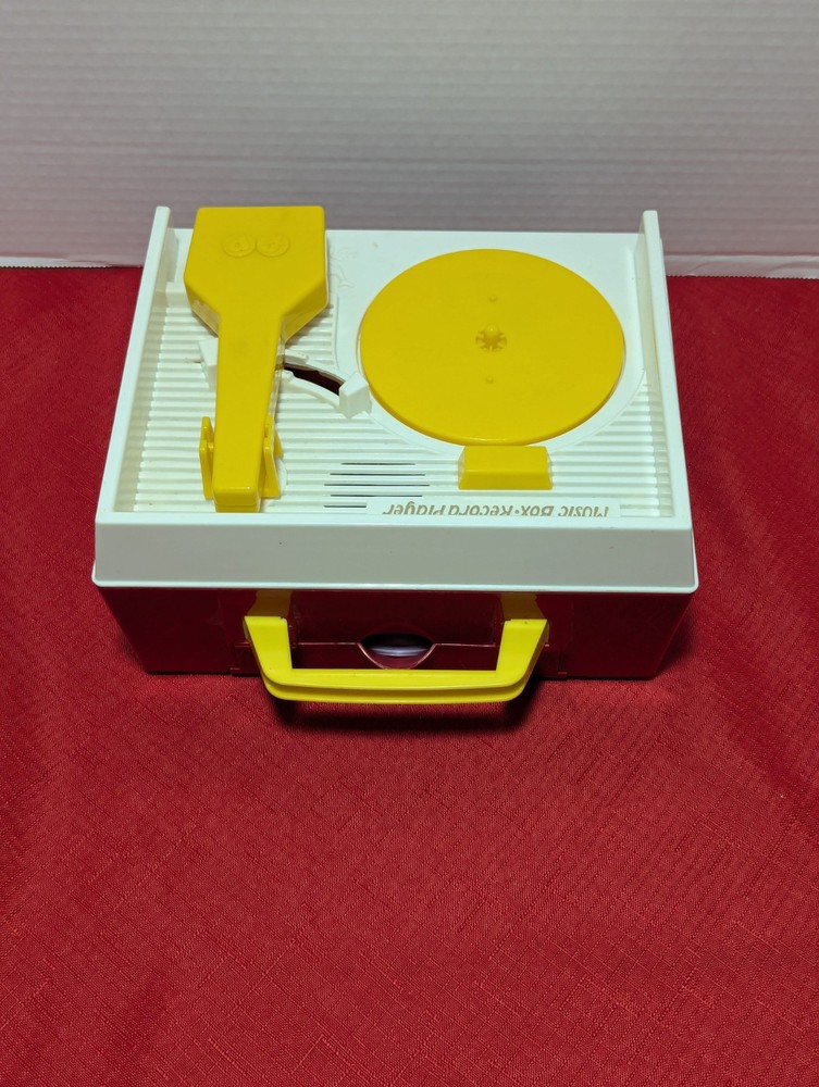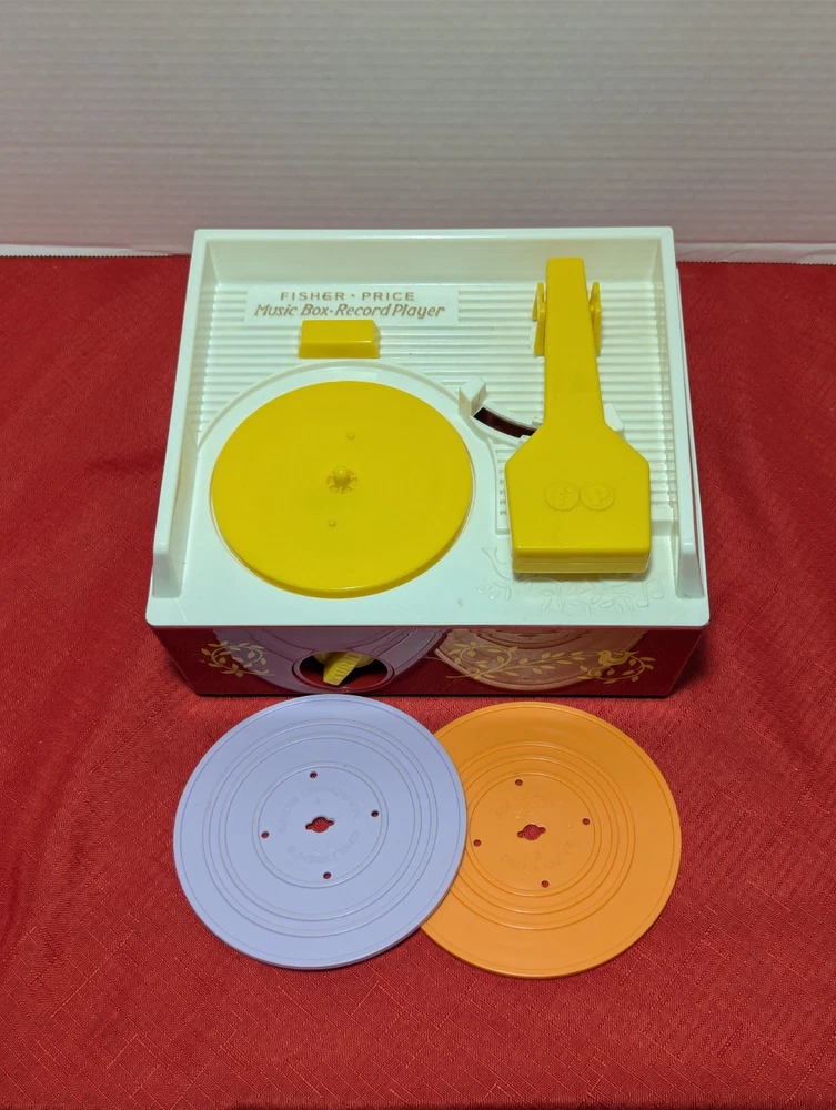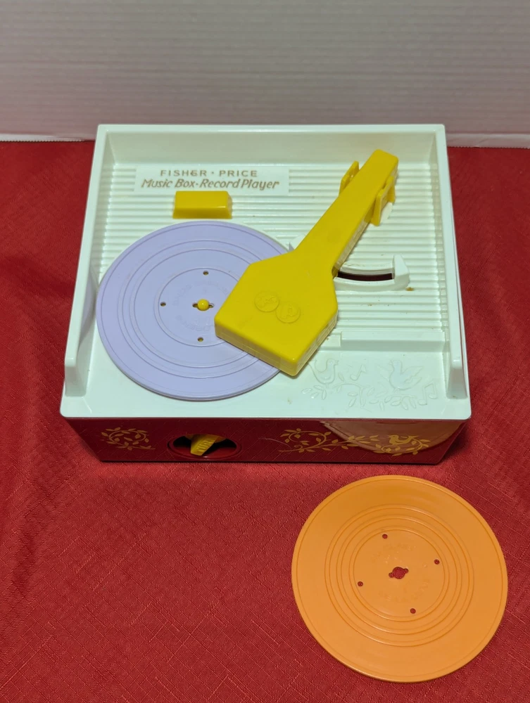 Vintage 2014 Fisher Price Music box - Record Player Tested and Works New Batteries Installed Comes with 2 Records Orange & Purple -Twinkle Twinkle Little Star - Au Claire De La Lune - Childrens Marching Song - Camptown Races