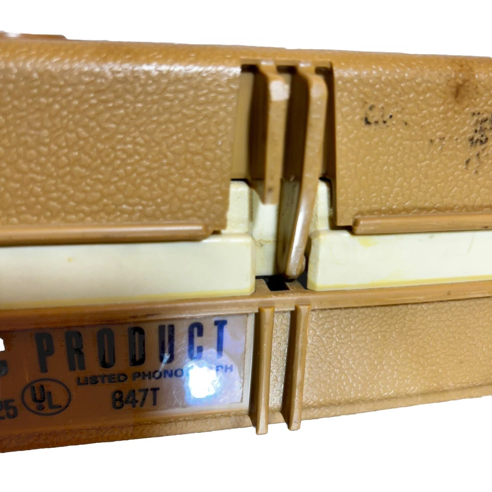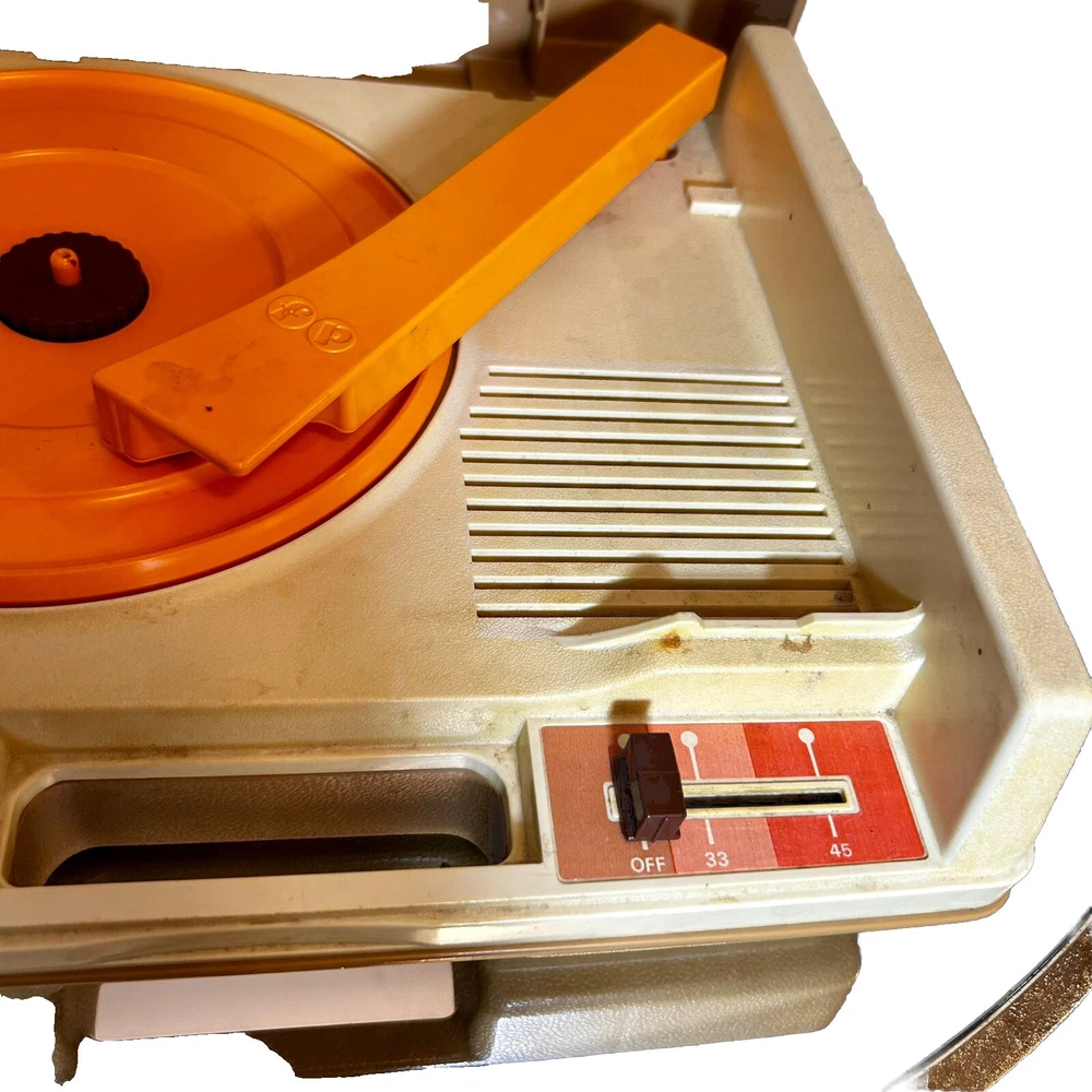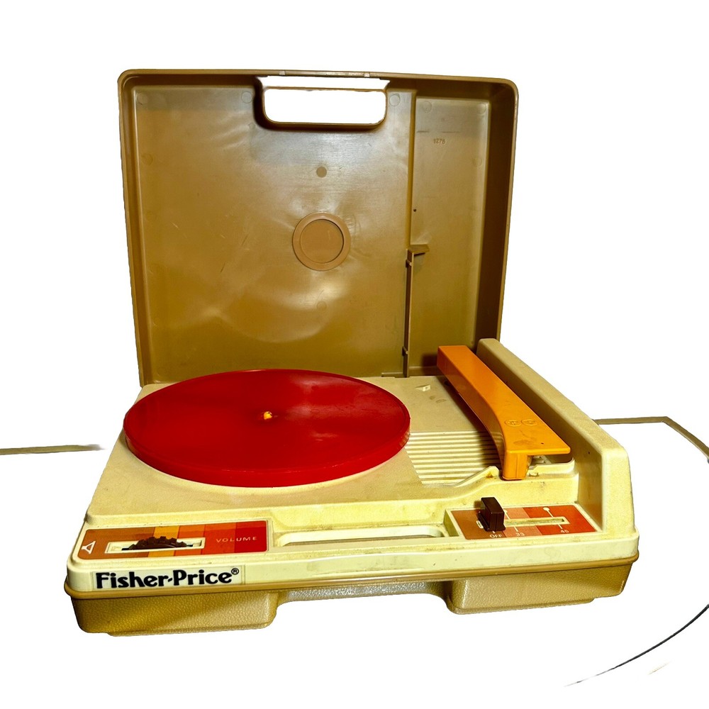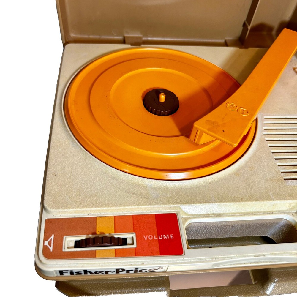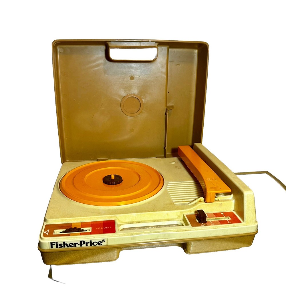 ITEM WORKS!! See pictures please hinges are damaged.This vintage Fisher-Price 825 Phonograph Turntable Record Player is a great addition to any collection. With its classic design and functional features, it's perfect for both kids and adults alike. The turntable is in great condition and comes with a needle for easy use. This musical toy is perfect for those who love retro style and want to bring a touch of nostalgia to their home. The Fisher-Price brand is well-known for its quality and durability, making this turntable a great investment piece. Whether you're a collector or just looking for a fun way to play music, this vintage record player is sure to impress.
