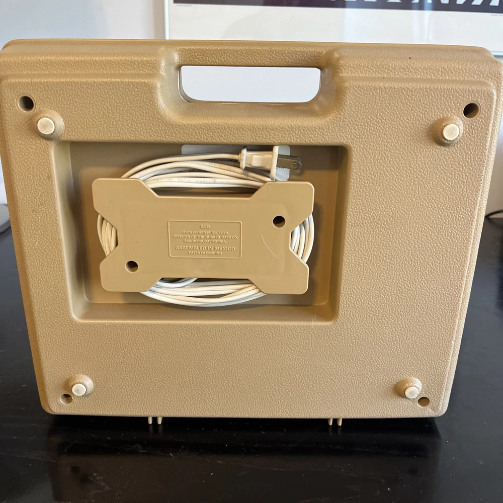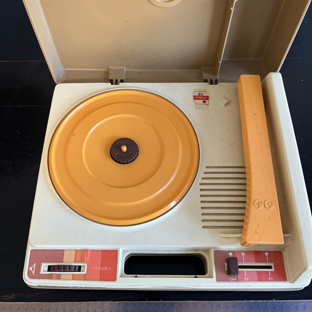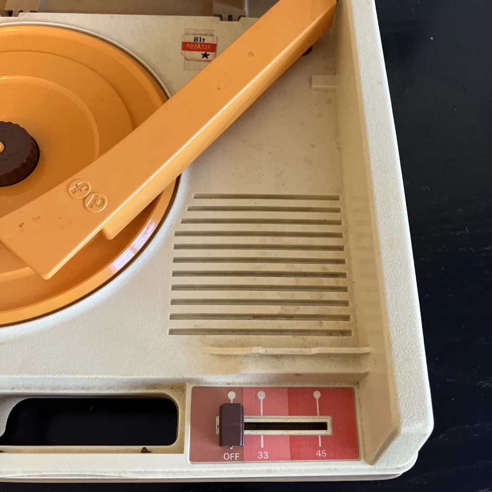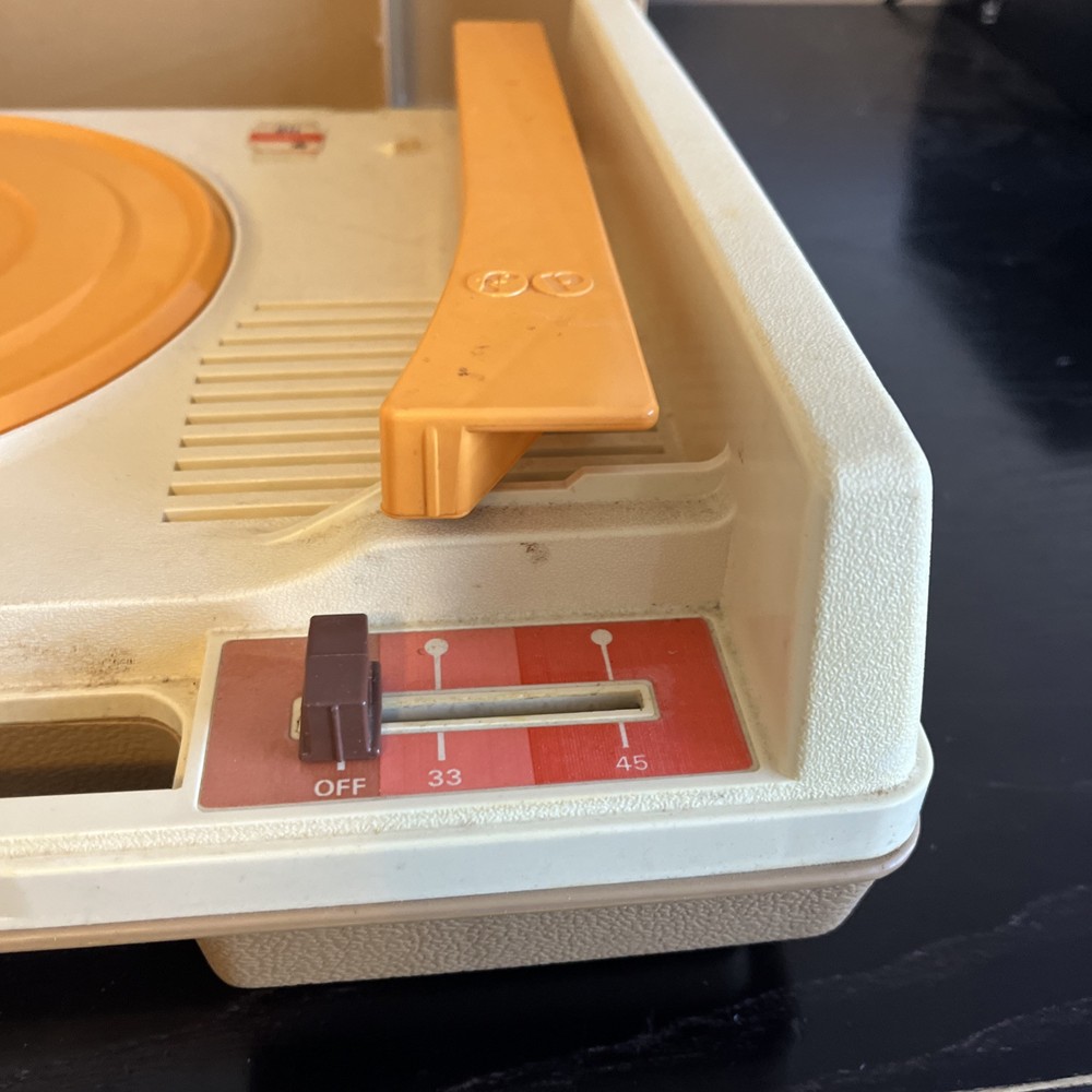Experience the nostalgia of vintage audio with this Fisher-Price 33/45 RPM adjustable turntable. Perfect for collectors and music enthusiasts alike, this turntable comes with a case for easy storage and transport. Enjoy your favorite vinyl records with the sleek and classic design of this Fisher-Price turntable. Ideal for any home audio setup, this vintage piece is a must-have for any vintage audio collector.