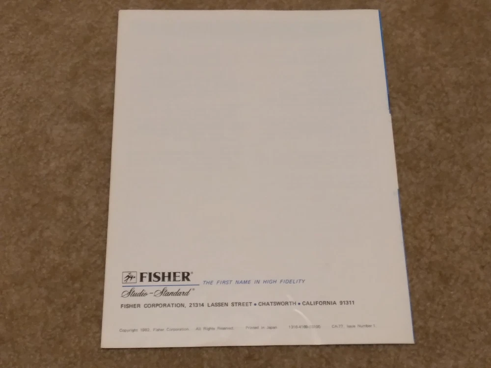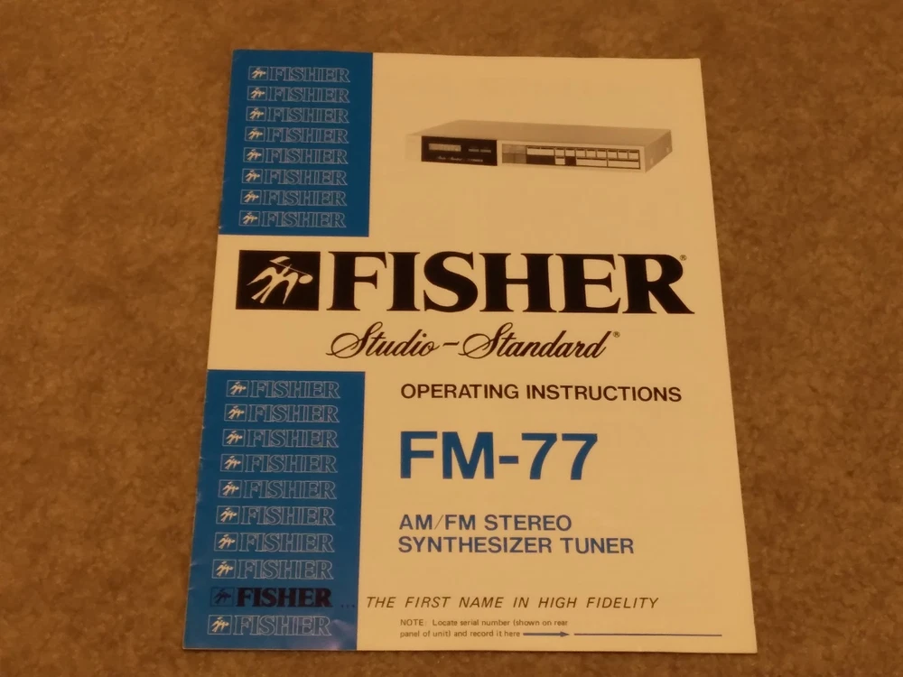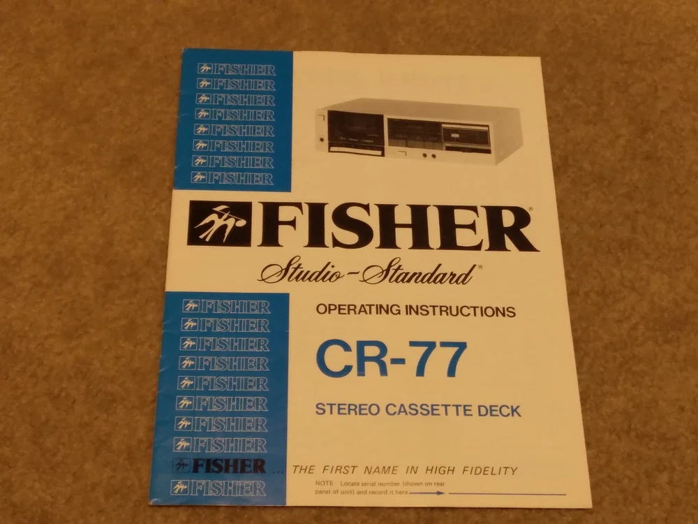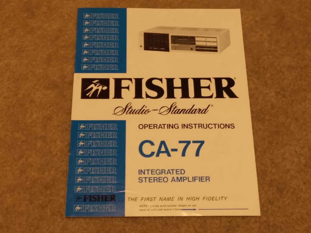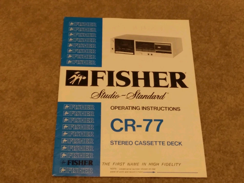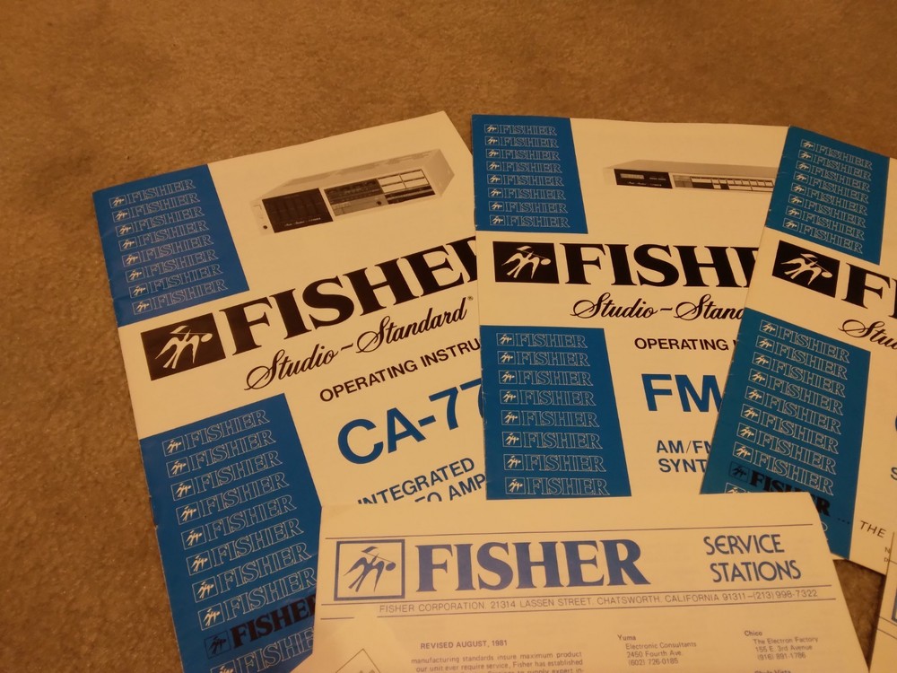 *All ORIGINAL* *Vintage Fisher Studio Standard Paper Work ONLY* (8 Pieces) ~CA-77 Integrated Stereo Amplifier Operating Instructions Manual ~FM-77 AM/FM Stereo Synthesizer Tuner Operating Instructions. ~CR-77 Stereo Cassette Deck Operating Instruction Manual.. ~RA-136-2 Component Cabinet Assembly Instructions & Part List. ~Fisher Service Station Locations Booklet (X 2).. ~Fisher Corporation Personal Information Card.. ~Fisher Limited Warranty Card.. **NO Receiver or any other equipment is included** ...[ Excellent Condition ]... *Selling as is and sale is final with no warranties, guaranties or adjustments and no returns... Sale Is Final... *See our other listings for more Vintage Stereo Stuff* Classic Audio Video & Stereo 3315 Harrison Ave. Cincinnati, Ohio 45211.......... [West Side, Cheviot Westwood Area] SALE IS FINAL with NO RETURNS ....................................................................................... See our other listings or stop in our store for more vintage Stereo and Turntables, Record albums, 8 track, Reel to Reel, VHS, Beta... ETC. 3315 Harrison Ave. Cincinnati, Ohio 45211 ........................................ Thank You.