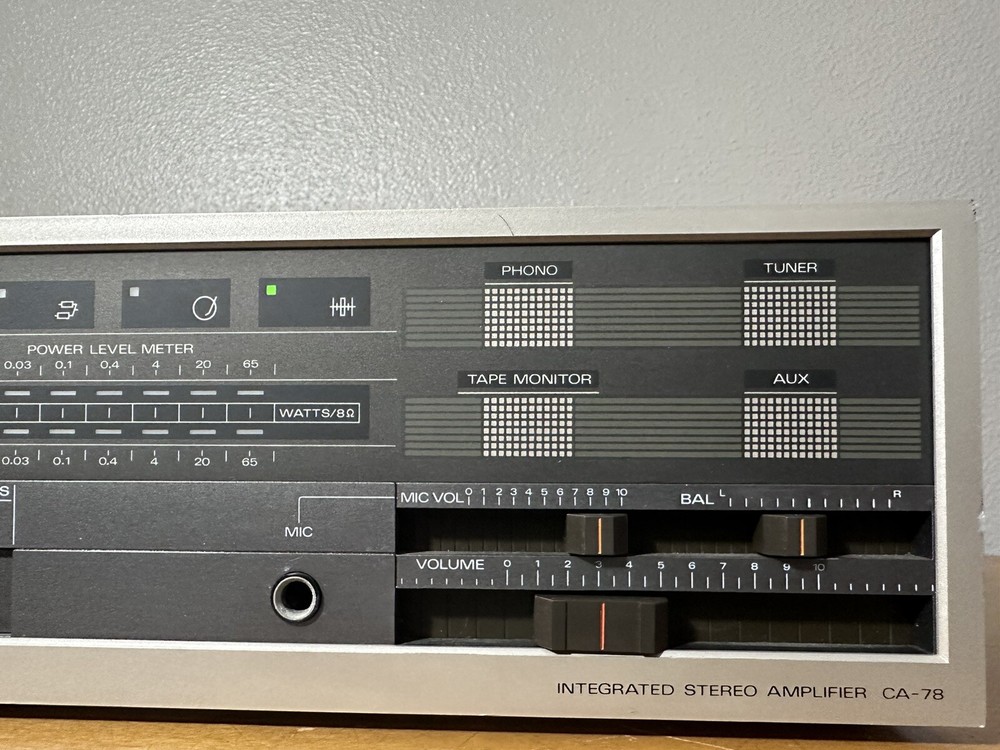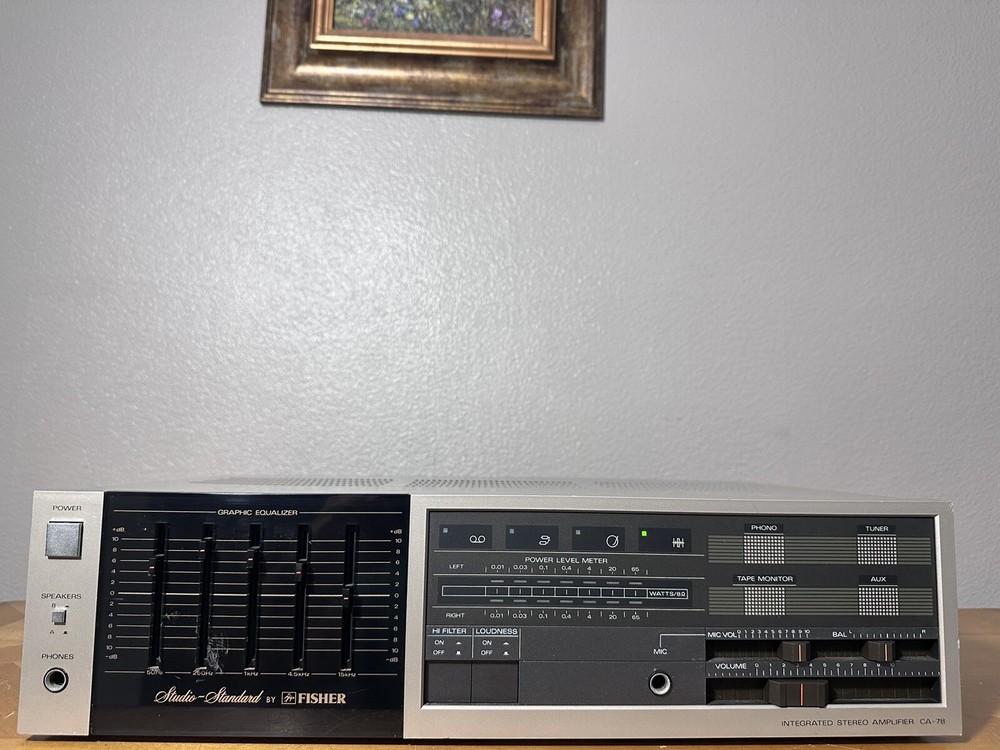 Vintage Fisher CA-78 Stereo Integrated Amplifier. Read.. Cosmetically this unit is good-fair condition. It has some scuffs and scratches from normal wear. The unit powers on and all the buttons work as they should. I have not done any further testing other than powering it on and off. That’s why I’m selling for parts. Ships fast and very secure.