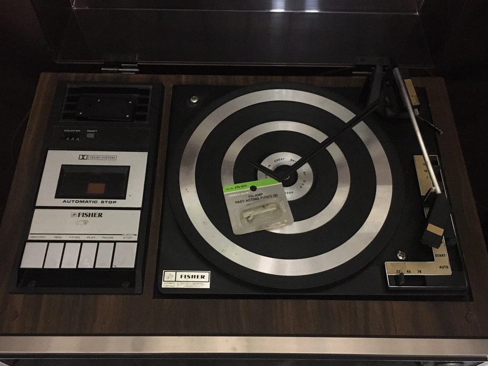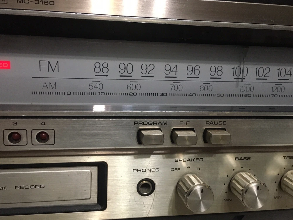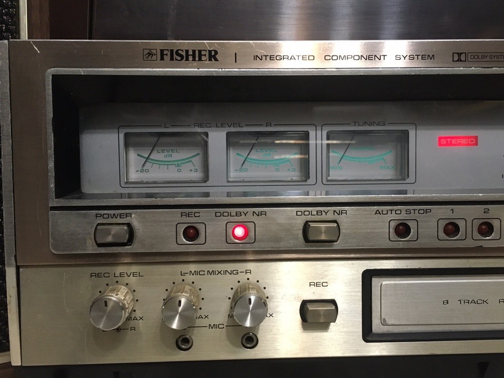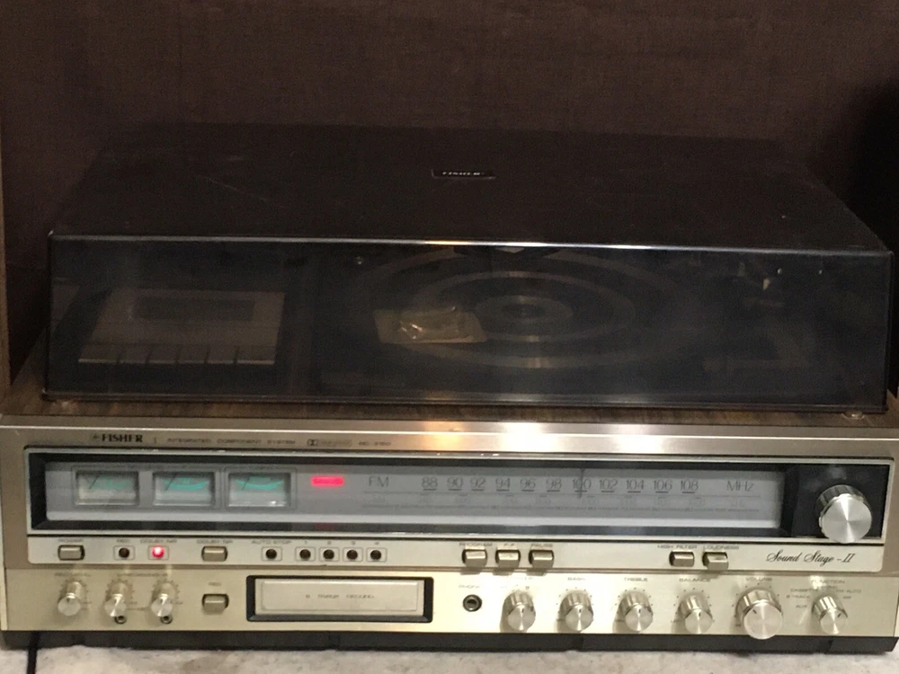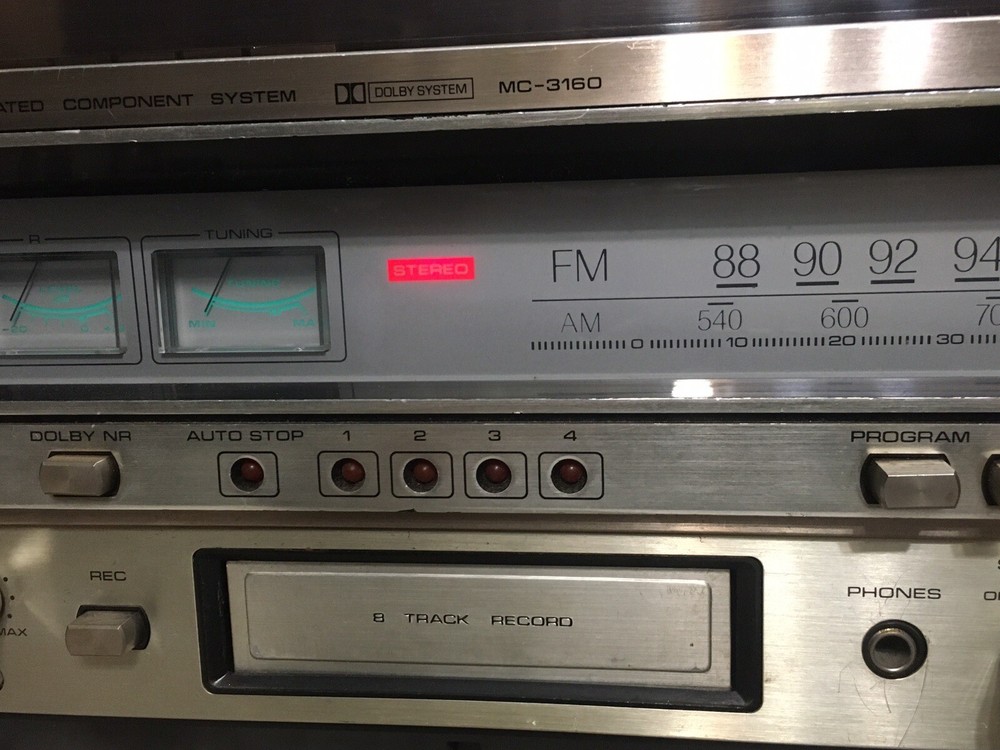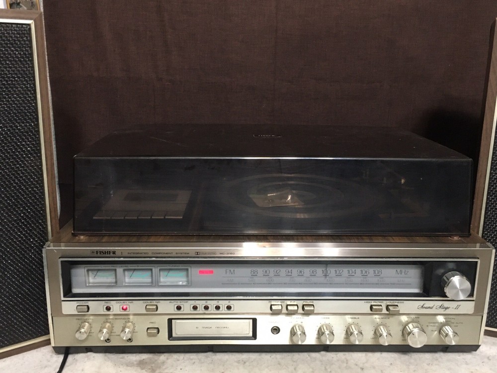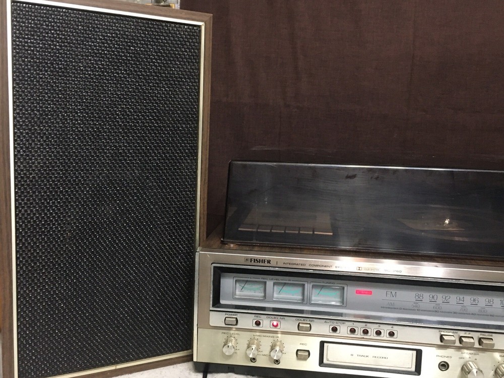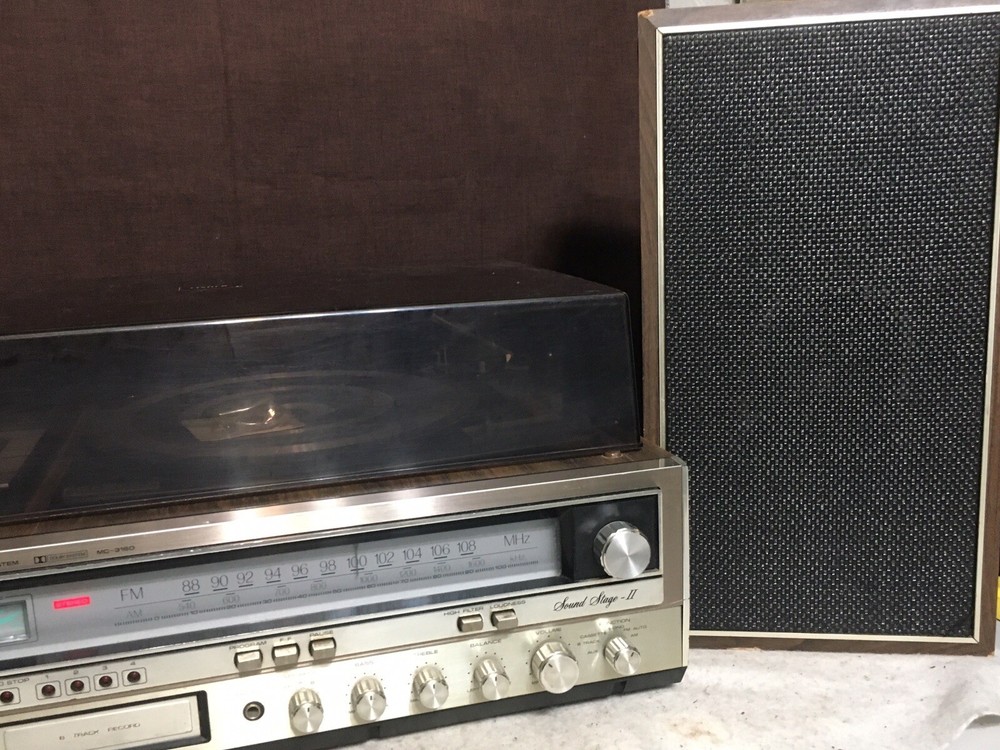 The Vintage Fisher MC-3160 Audio Component System is a rare find for collectors of vintage audio equipment. This audio component system includes a phono preamplifier, cassette deck, 8 Track Deck and AM/FM tuner, all in one compact and stylish package from the well-known brand Fisher. With its retro design and functionality, this vintage system is sure to bring a touch of nostalgia to any audio setup. Stereo powers on and AM/FM stereo works well. Original speakers both working and neither speaker blown but I did notice a low level hum. Other components untested but in good cosmetic condition. Please see pictures for additional information.