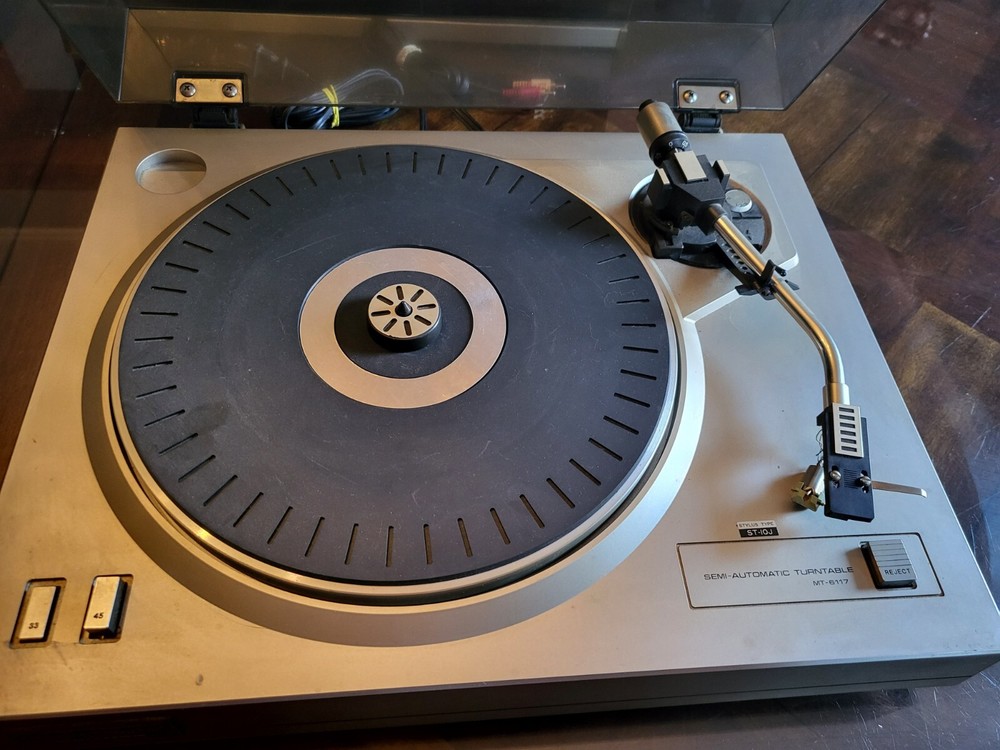 Vintage Fisher MT 6117 Semi-Automatic Turntable/ Record Player. Parts or repair. I tested the unit and it played but it would not maintain record speed. It appears the belt needs to be replaced. I took my record off of it and the head that holds the needle fell off the arm. Being sold as is