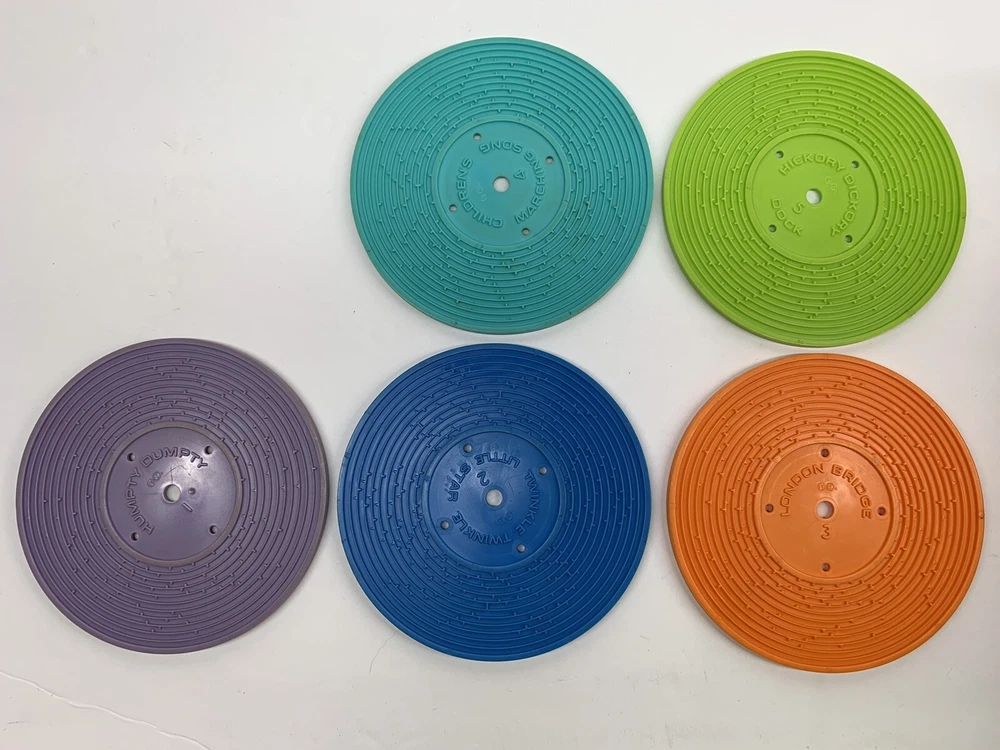 This is a vintage 1971 Fisher Price record player model 995 in great condition. Included are five double sided records to play music. Please see photos for condition....