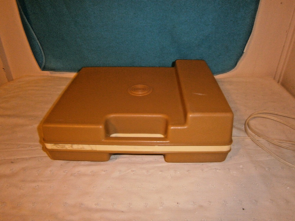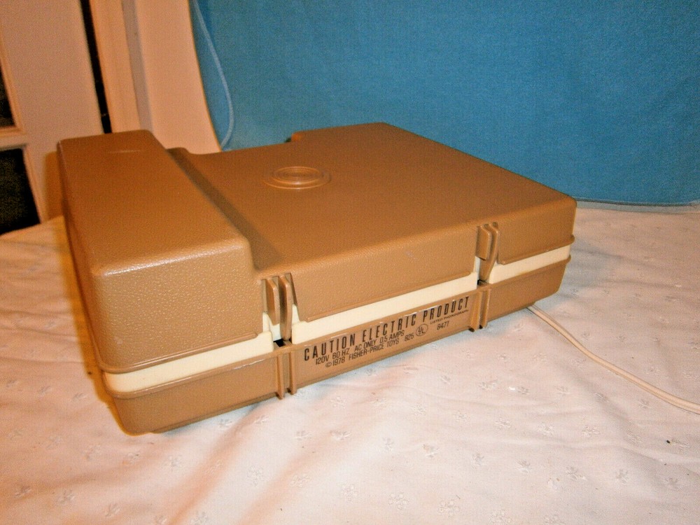 Fisher Price 1978 record player. Good used condition, works great. The top comes off when you open it, either it is suppose to or the little hooks have worn down. I don't see anything broken.