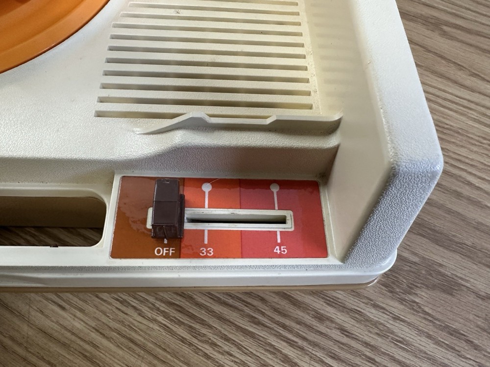 Vintage Fisher Price Portable Phonograph Record Player WORKS QUIET 1978 #825 Pre-owned, powers up and works though is very quiet. You will receive exactly what is photographed. See photos. AS-IS. Please view all photos carefully and ask any questions before purchasing. Photos are considered part of the description.**Please keep in mind we are a thrift store; we do try our hardest to accurately identify all items. Though we make no guarantee and are always open to more information!**