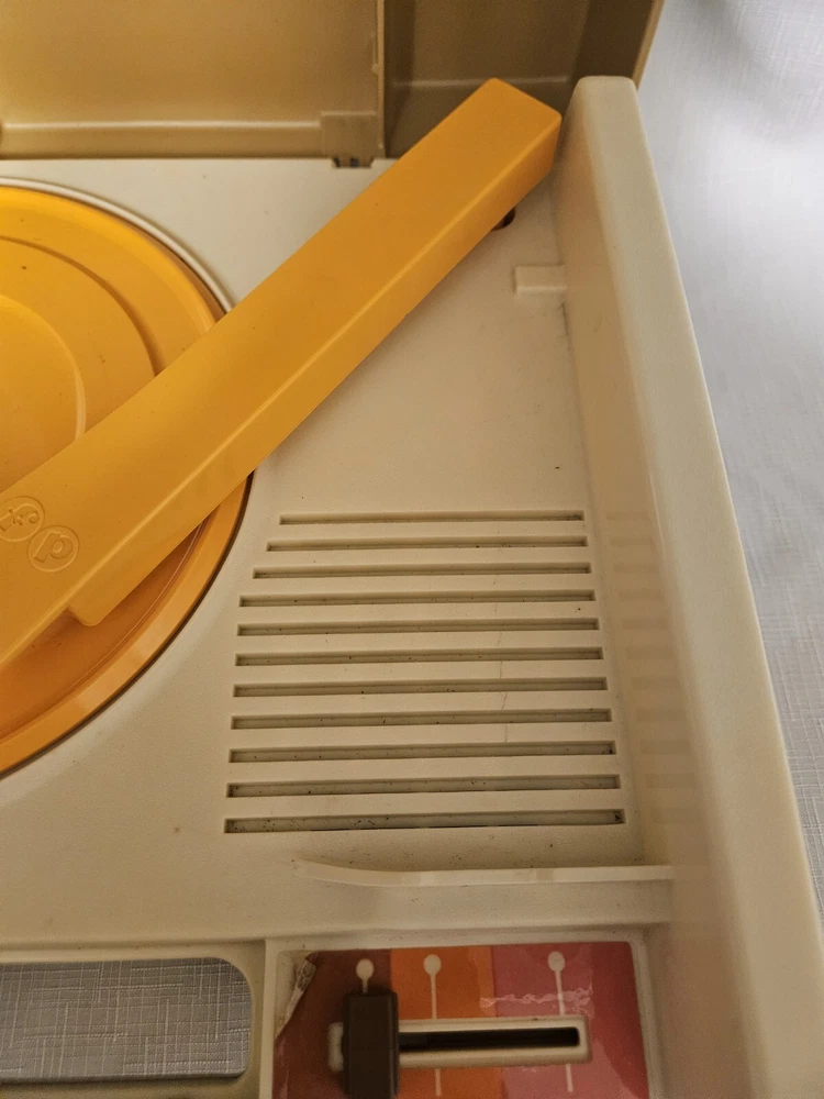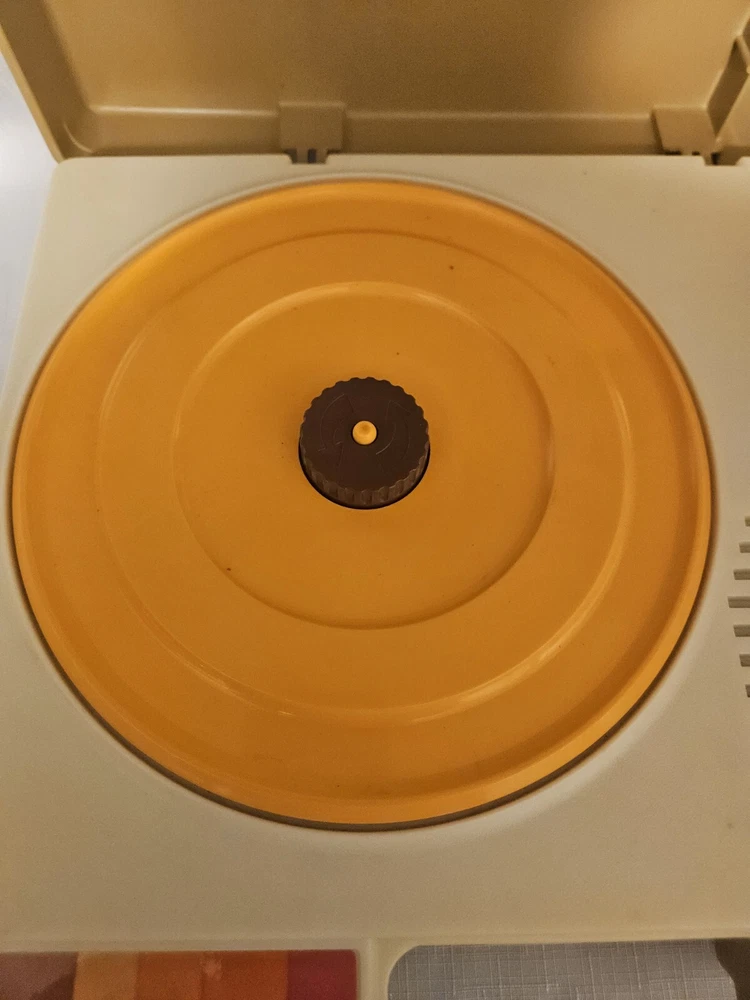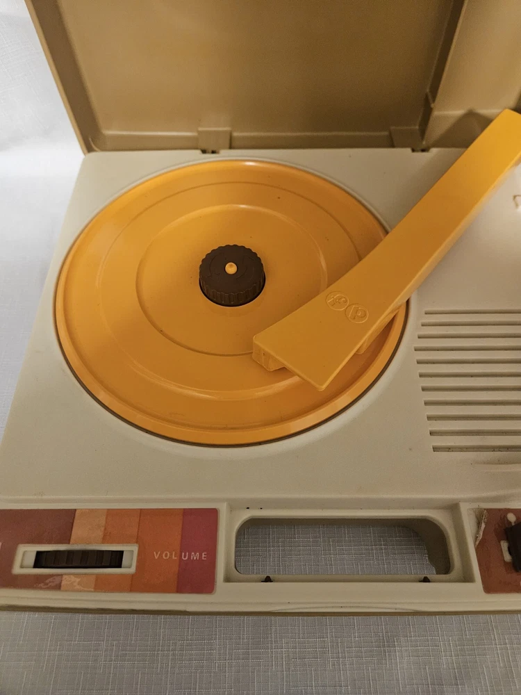 The Vintage Fisher Price Record Player from 1978 is a portable phonograph with the model number #825. This classic toy is a Type of Record Player manufactured by Fisher-Price in the United States. It features a turntable design, allowing children to play with and listen to records in a fun and interactive way. Whether for nostalgia or playtime, this vintage toy offers a glimpse into the musical toys of the past.