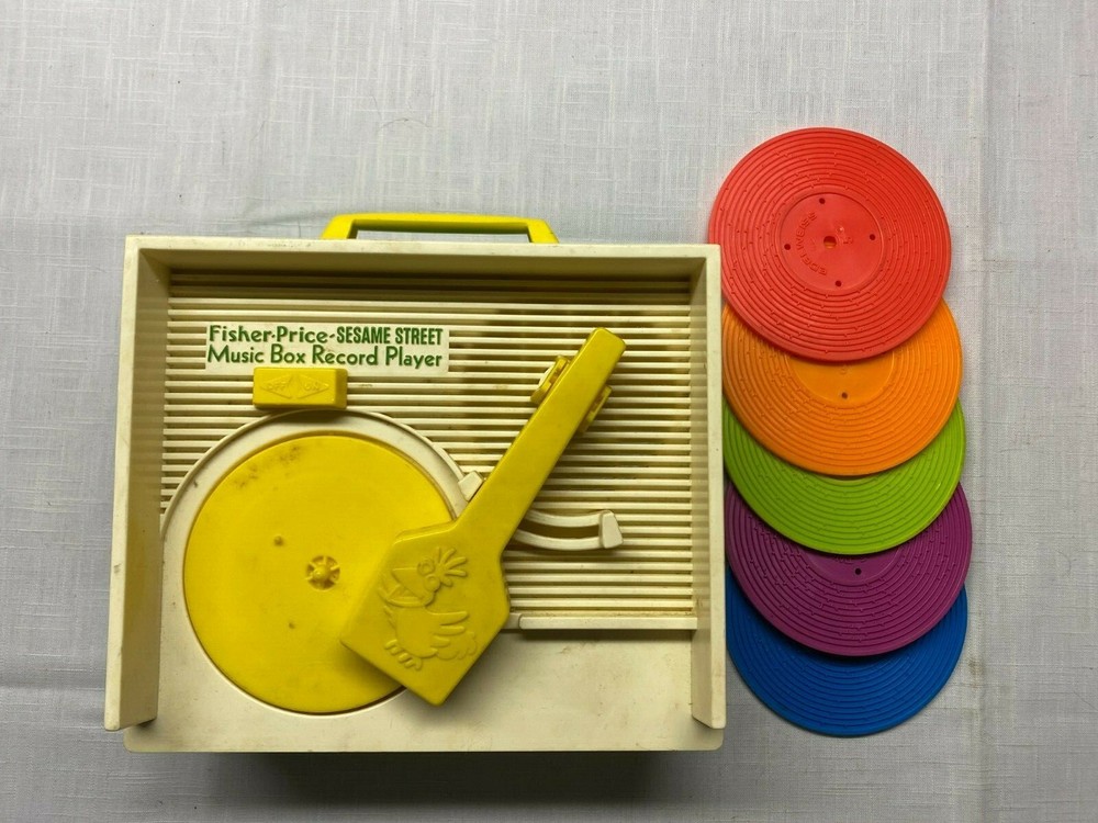 In this auction you will be getting 1 Fisher Price Sesame Street Music Box Record Player from 1984. There are 5 records included and the player does work. The record player is dirty and good use a good cleaning. Is in good shape for its age. Please see the pictures for the exact item that you will receive. In hand and ready to ship. If you have any questions, please ask before bidding/purchasing. Payment must be made Immediately. Please note that I only ship to the lower 48 states, No international shipping. Should you have any questions or problems please contact me BEFORE leaving feedback and I will be happy to work with you to resolve any issues.