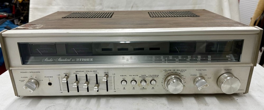 Vintage Fisher RS-2004A Stereo Receiver You are bidding on a Vintage Fisher RS-2004A Stereo Receiver (45 watts per channel into 8Ω (stereo)) Good Vintage Condition . Some static in the knobs when adjusting. Good Sound (A+B) Left & Right Speaker OUTputs have been tested. Clean Sound. **See Video** Inputs, Am/Fm Radio have been tested (All work) Front Panel has no LIGHTS*** Back Antenna Clip is broken. Small chips in the wood. Everything pictured is what is in the auction. Add $70.00 which covers shipping, handling and insurance via UPS in the 48 Contiguous United States Only. We do not ship outside of this territory. We accept PayPal. Payment by checks (which are held for a 10 day period before items are released) also accepted. We will ship 2 business day (Monday - Friday) after cleared Payment. Maryland residents and customers picking items up in person add 6% sales tax. Sales Tax will be collected by eBay where applicable. If you have any questions, please email them to us before winning the auction. We are happy to help you with any questions you may have on any of our items up for auction. Northwestern Loan Company, one of Maryland's oldest and largest pawn shops, has been under the same family ownership at the same location since 1919. We are located at 1701 Pennsylvania Avenue, Baltimore, Maryland 21217. 070872