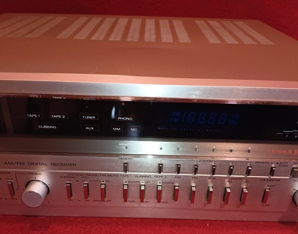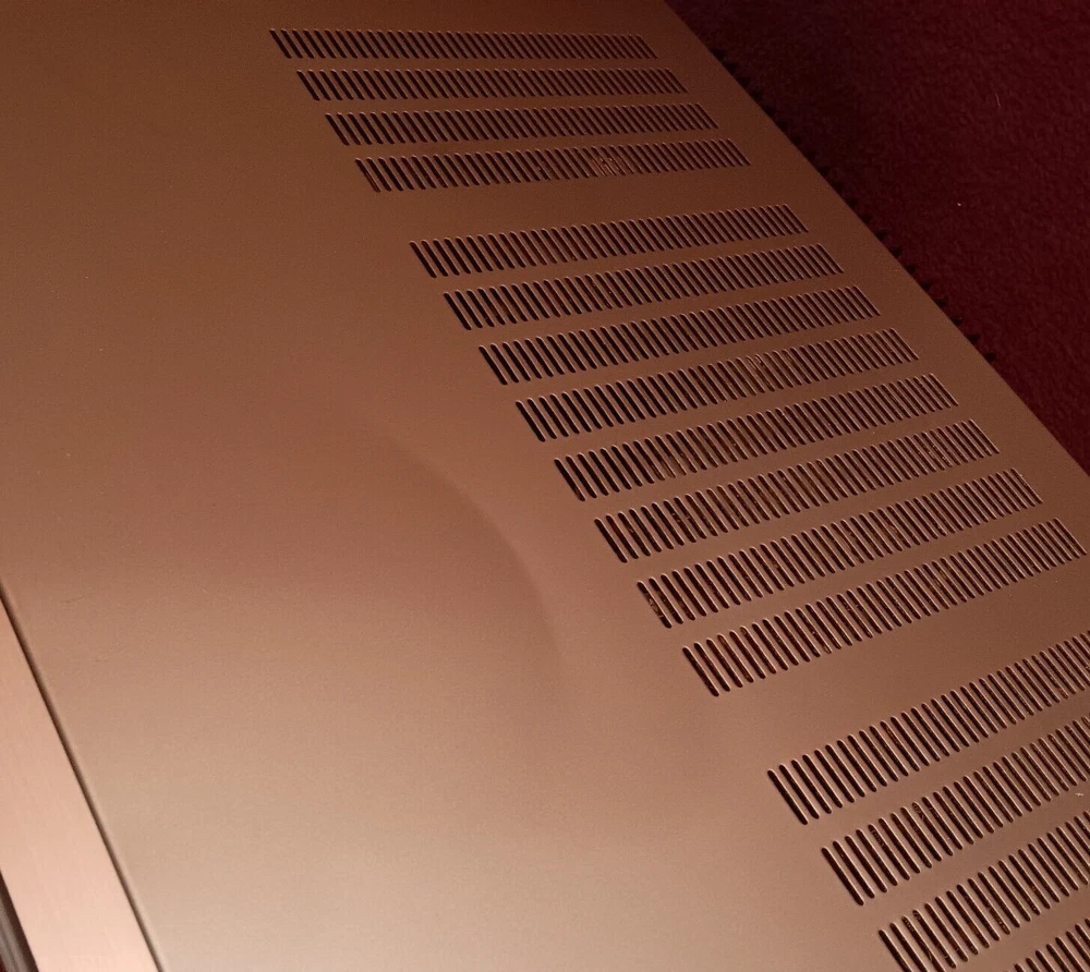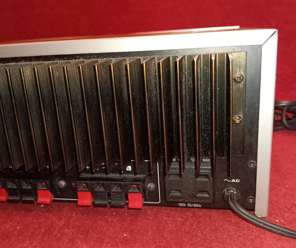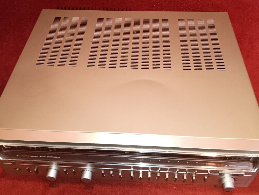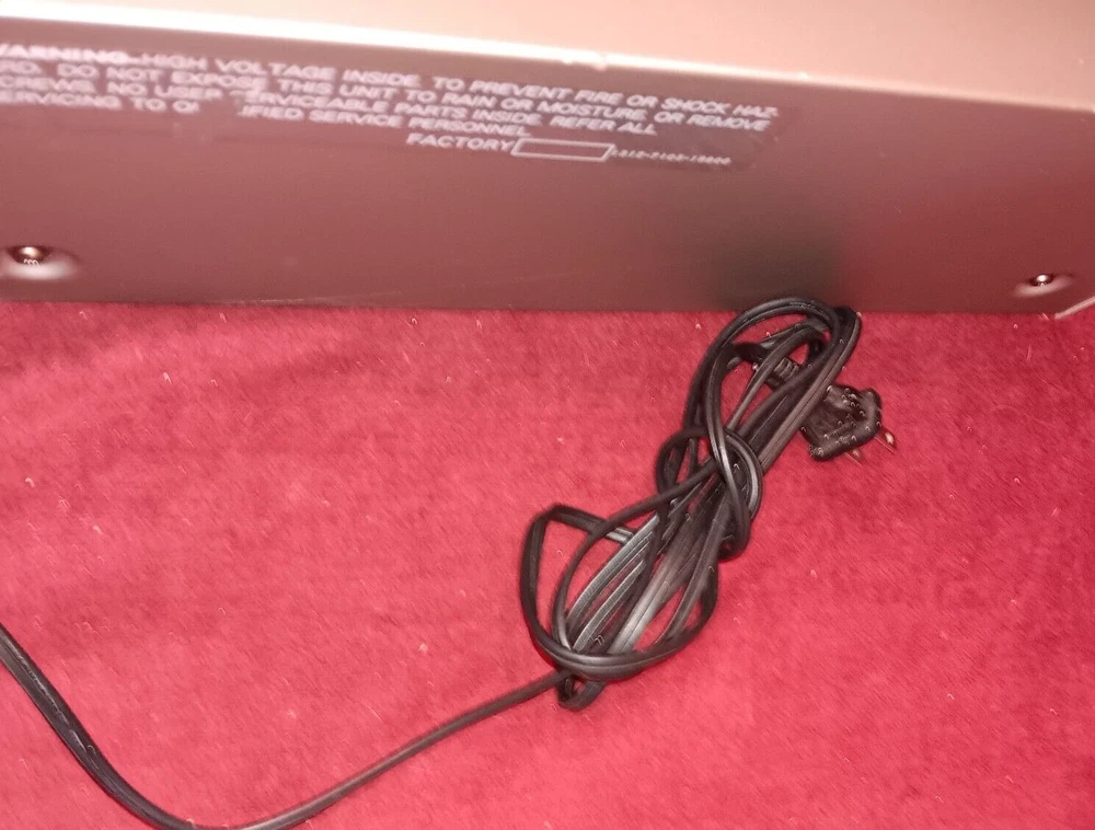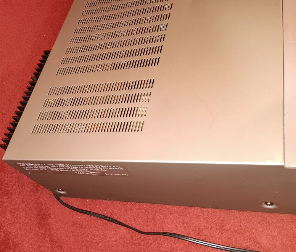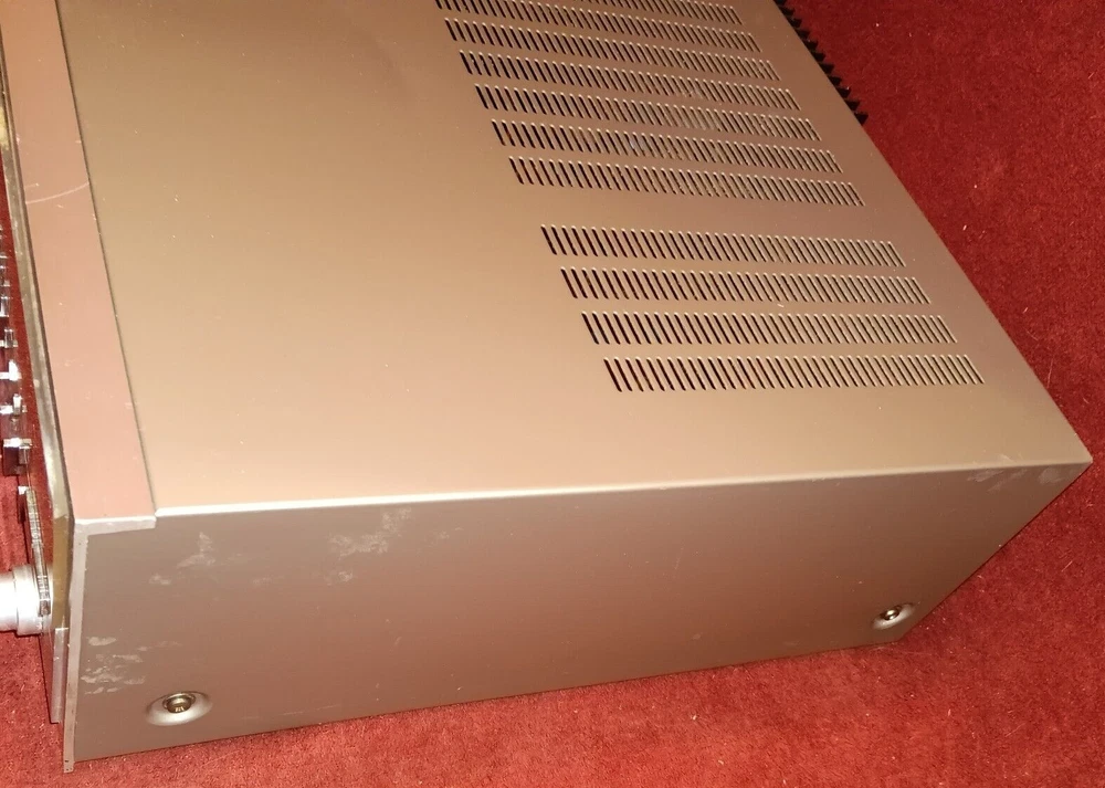 this is in pretty good shape.. hooked some speakers to it.. is working.. all the buttons are working.. the one issue is that the power button is in a bit.. have to use a pen or pencil to turn push it in .. clicks in turns on .. need it to turn it off.. besides that everything seems to work .. has a dent on the top (pic) .. has some scratches and marks.. not bad.. front is pretty nice.. will double box or more to ship.. thanks for looking.