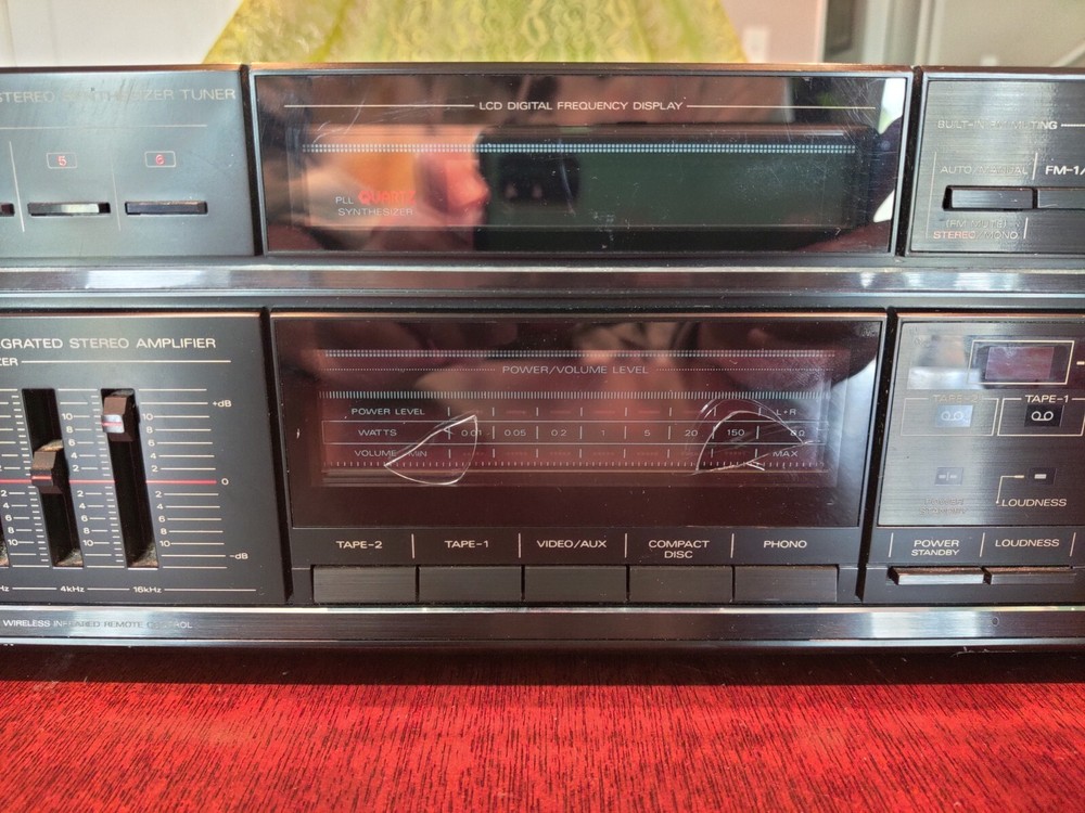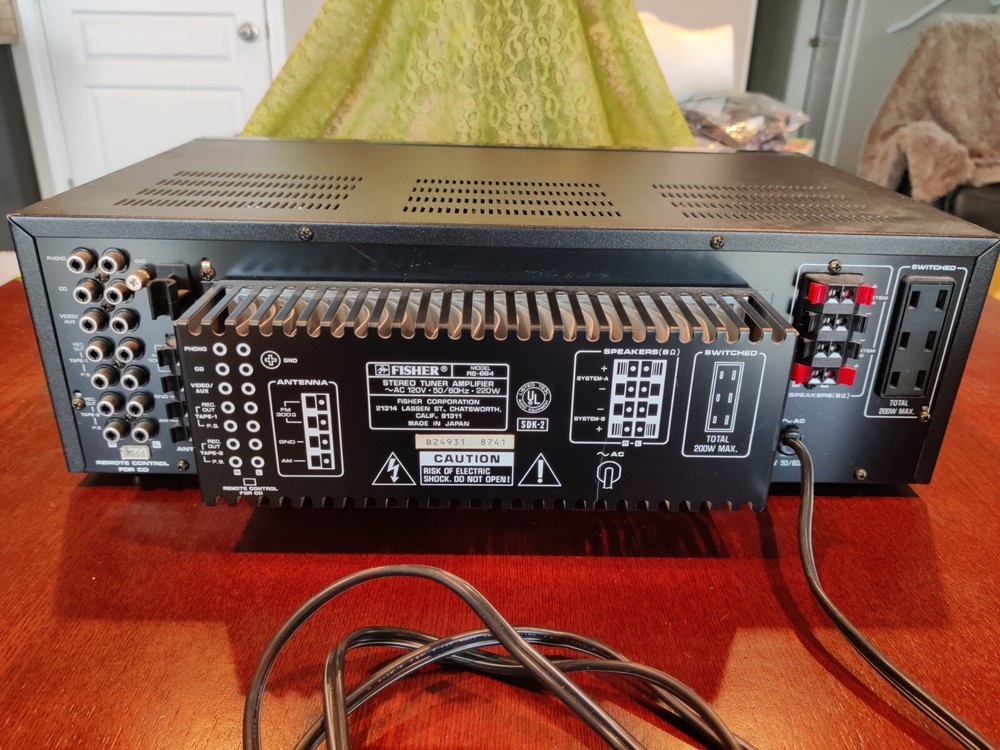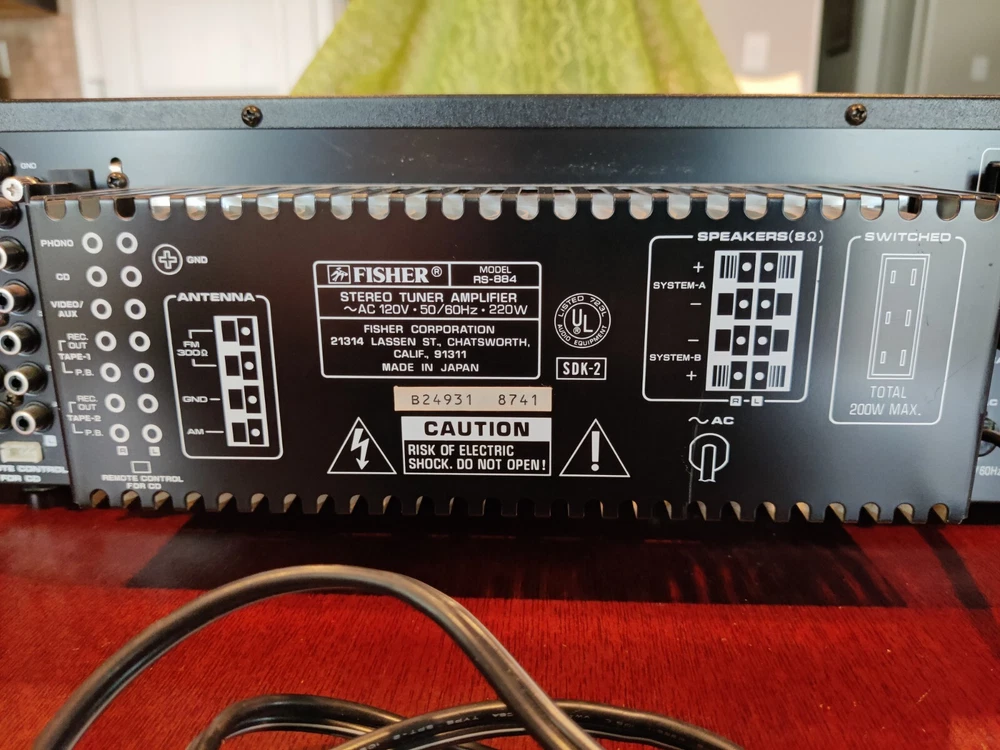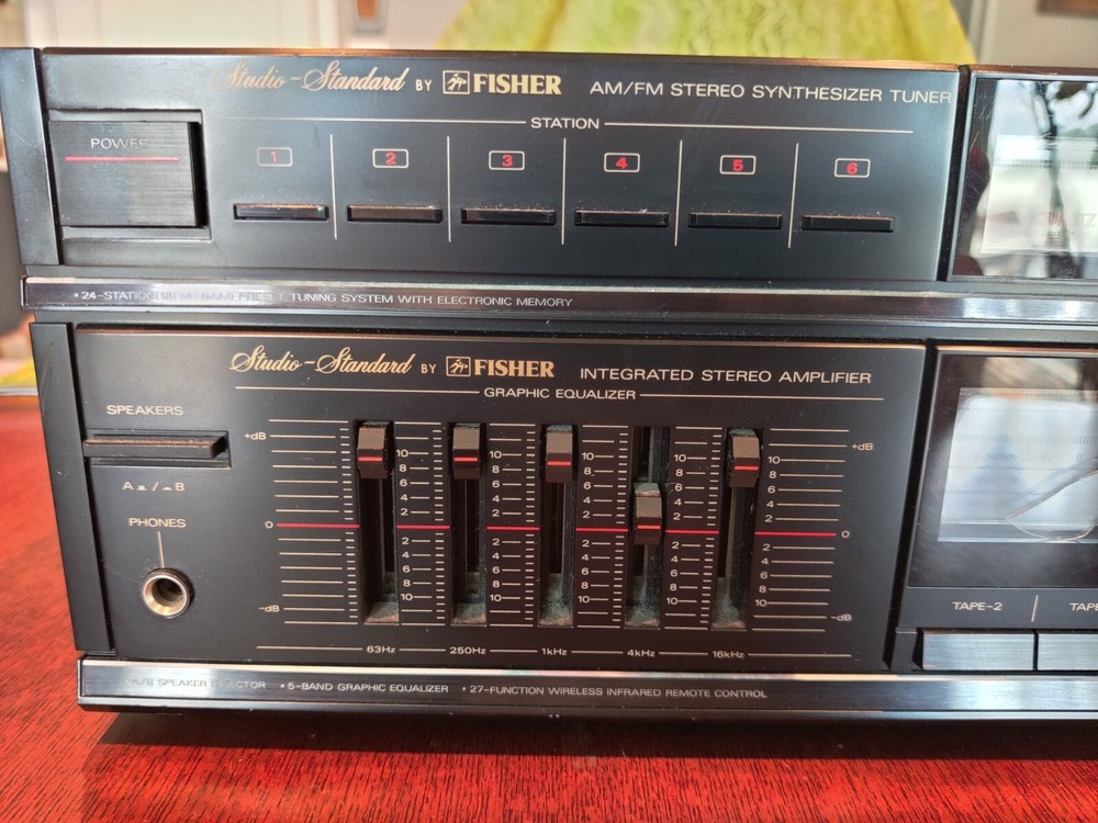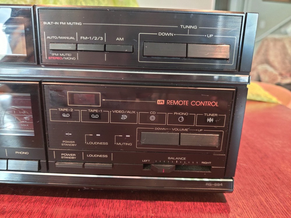 This Fisher RS-884 AM/FM Stereo Synthesizer tuner is in excellent shape. Tested and working. There is a small hole in the outer window of the power/volume display, but the piece of it has been carefully removed and will be included with the stereo in case you wish to repair it. Includes AM Loop antenna. Sold as-is. Packed carefully and shipped with USPS