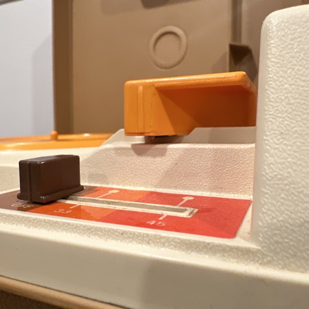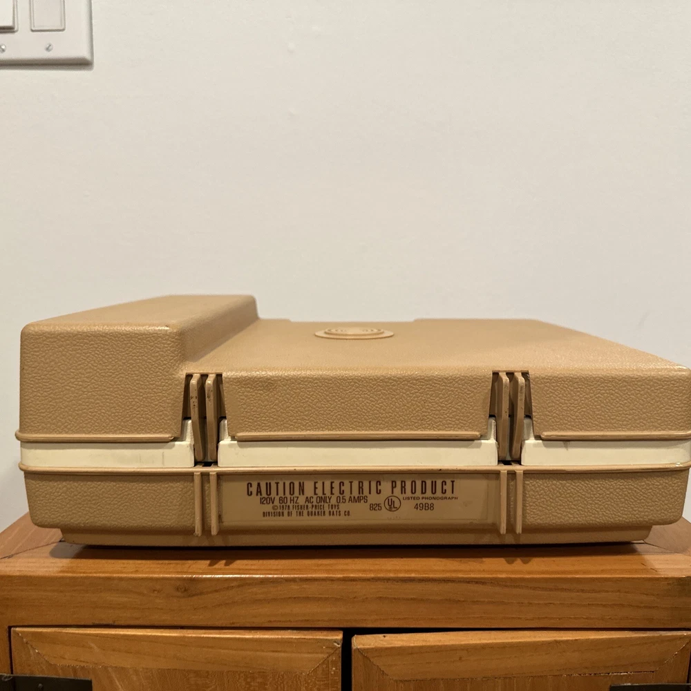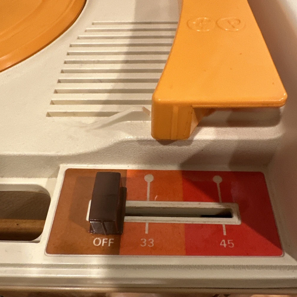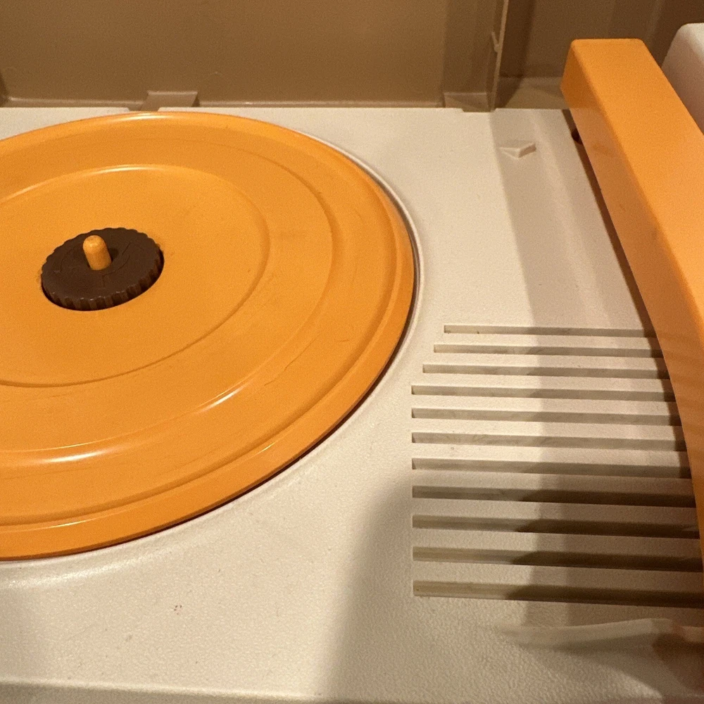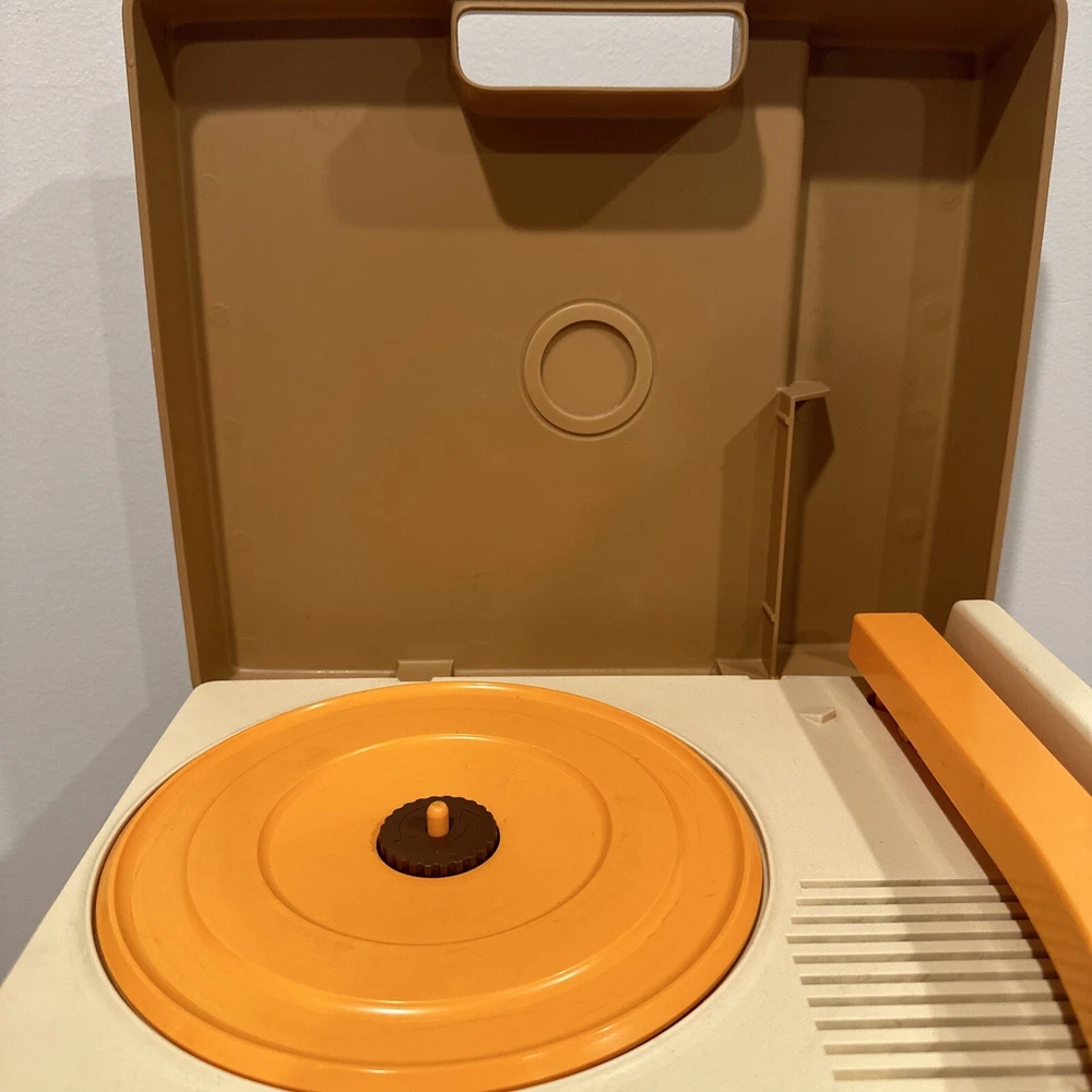 This vintage Fisher-Price plug-in portable record player from 1978 is a rare find! It's perfect for young children aged 1-7 who love music and toys. The record player is made by Fisher-Price, a trusted brand known for quality and durability. With a fun retro design, this record player features a built-in speaker and a handle for easy portability. It's a great addition to any collection of musical toys and is sure to provide hours of entertainment for children. Don't miss out on this unique piece!