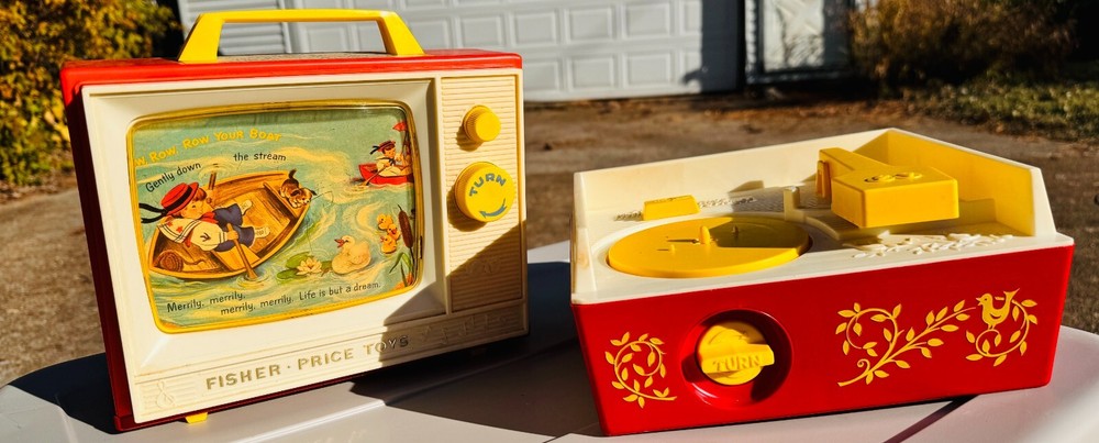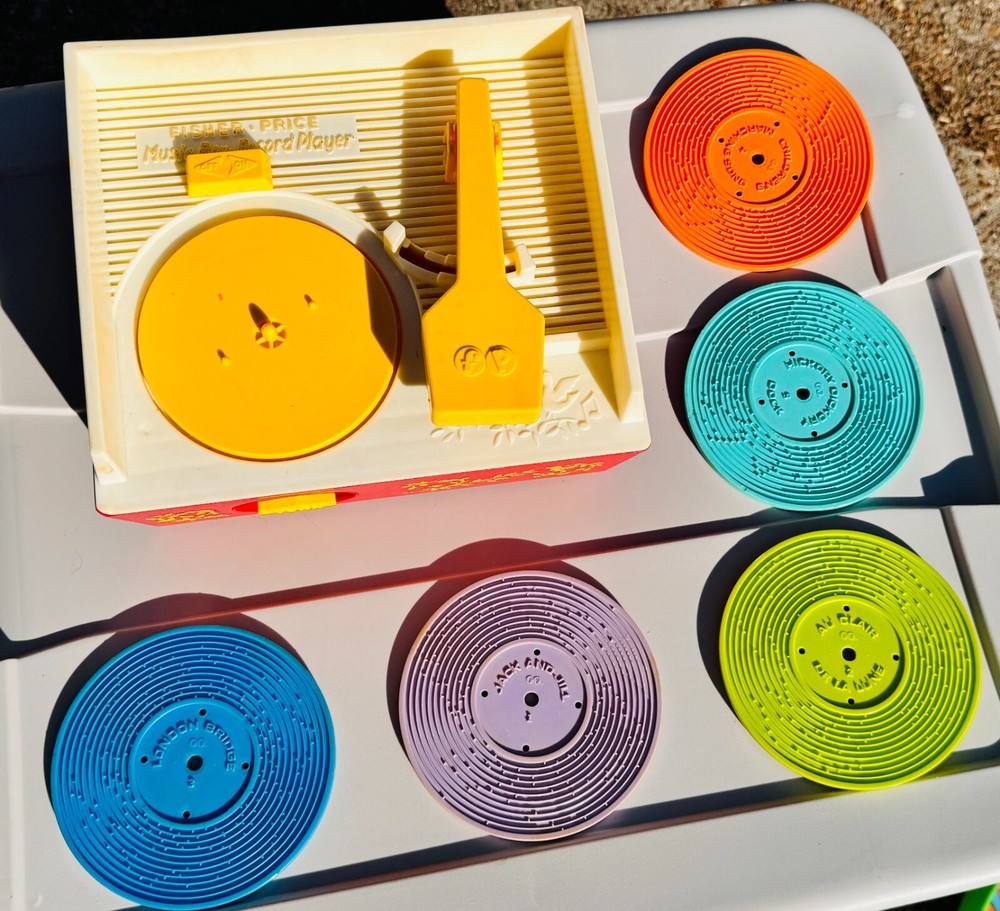 Both items are in very good condition for given their age. Watch the video . Both are in working order. The record player has all of its discs. A different song on each disc. I wiped them down, but they could use a little additional cleanup. Please note the photos and the video for details.