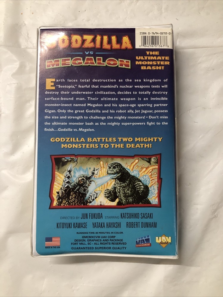 This vintage VHS cassette features the epic battle between Godzilla and Megalon. The clamshell case adds a nostalgic touch to any collection. The tape is in working order, ready to transport you to a world of sci-fi and fantasy. With genres including sci-fi and fantasy, this movie is sure to capture your imagination. The categories of Movies & TV and VHS Tapes make it a must-have for any collector. The title, Godzilla Vs Megalon, speaks for itself as a classic in this genre. Super rare! In great condition. Shipped with care.