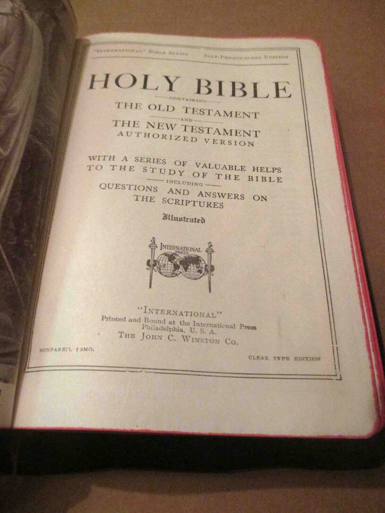 Vintage KJV Winston Bible International Series Illustrated Leather Good condition with lite cover wear Writing on dedication page